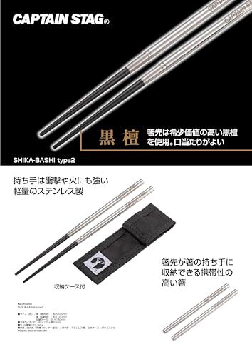 キャプテンスタッグ(CAPTAIN STAG) 箸 携帯箸 SHIKA-BASHI type-2 ジョイント式 ステンレス製 黒檀 収納ケース付