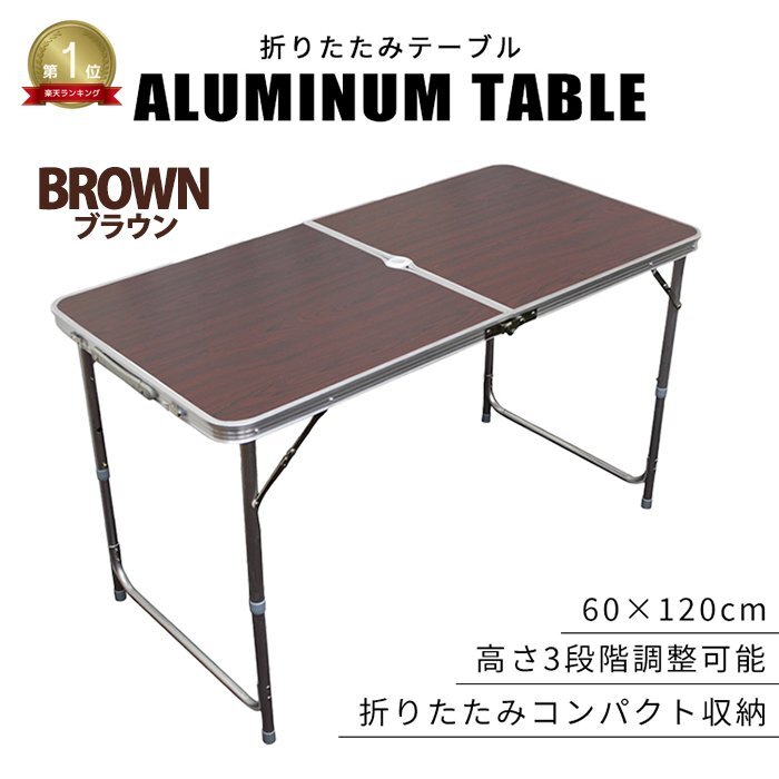 BBQやアウトドアに最適なコンパクトに折りたためるおしゃれなピクニックテーブル!! 車のトランクに入れる時や持ち運びの際にもとても便利な 取っ手付きで持ち運びもラクラク!! サビに強いアルミを使用。 天板には防水加工が施されています。 テーブルは3段階の高さ調節ができ、お好みのスタイルに合わせて 「ハイスタイル」「ミドルスタイル」「ロースタイル」の3パターンでお使いいただけます。 天板中心部にはパラソル用ホールがあるので、ベランダやテラスでの使用にもおススメです。 キャンプ、バーベキュー、お花見などにとても便利。 気軽にアウトドアレジャーをお楽しみいただけます!! ■商品仕様■ 折りたたみ式 テーブルサイズ(約):幅120cm×奥行60cm×高さ55cm/62cm/70cm ※高さ3段階調節 カラー:ブラウン 収納サイズ(約):幅62cm×奥行6.5cm×高さ62cm パラソル用ホール直径サイズ(約):26mm 材質:アルミ、MDF(耐熱・耐水加工)、ポリエステル、スチール 重量(約):4.7kg 荷重25kg 【注意事項】 ・海外製品で簡易梱包での輸入の為風防に擦れや多少の小キズなどがある場合がございますが 商品自体には問題ありませんのでご了承下さい。 (アルミレジャーテーブル 折りたたみ テーブル アウトドア ピクニックテーブル 折りたたみテーブル) |