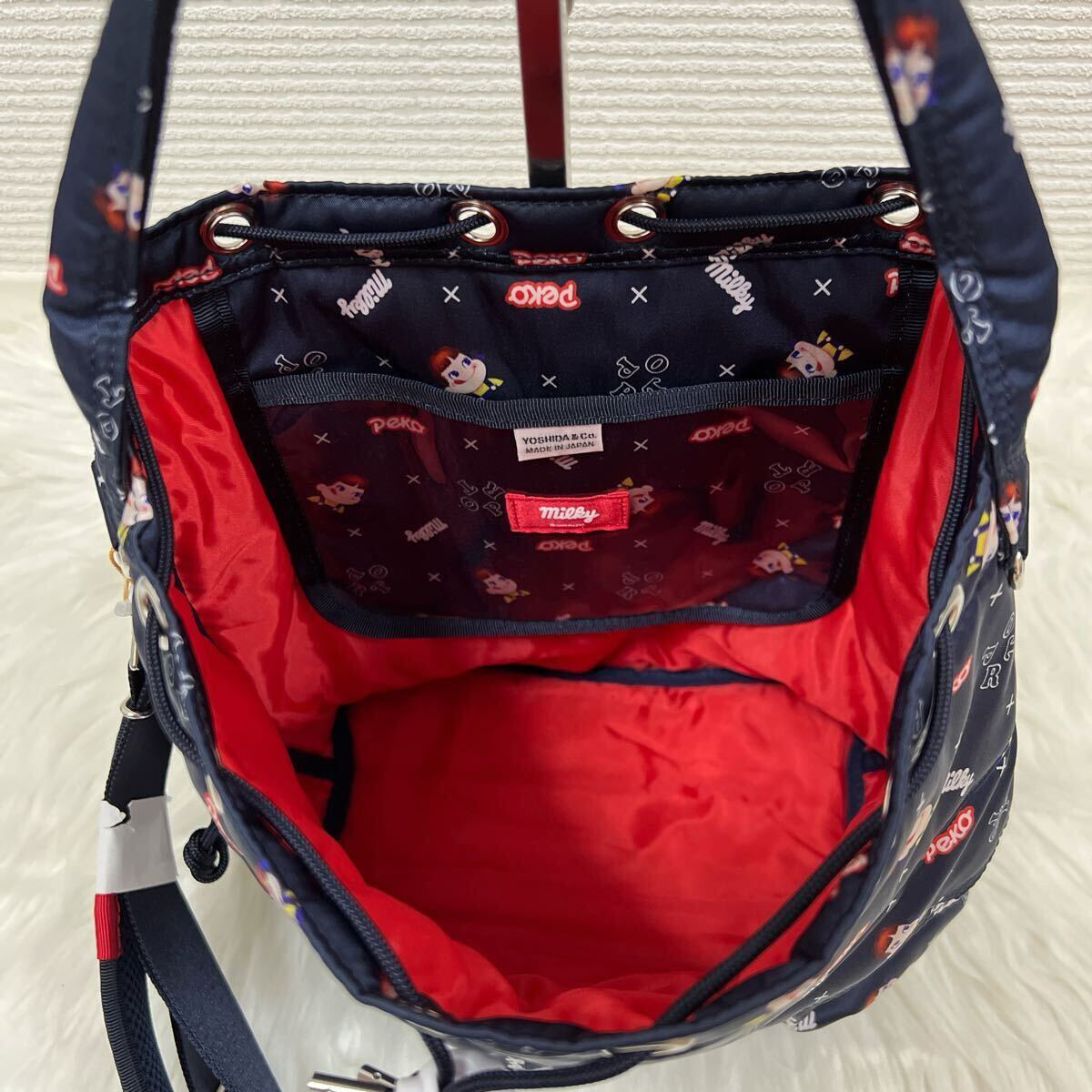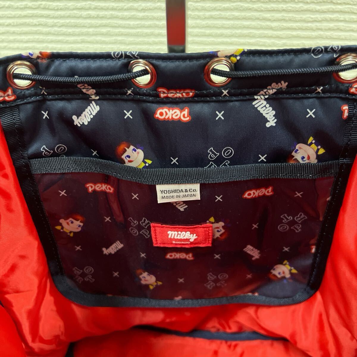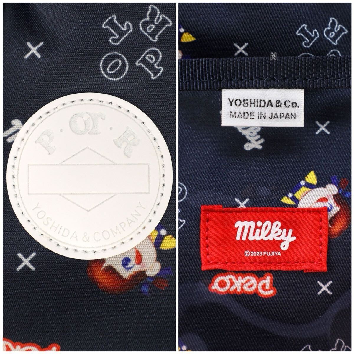 今回のコラボレーションは、POTRモノグラムに「milky」や「ペコちゃん」を組み合わせたオリジナルデザインを全面にプリントしています。