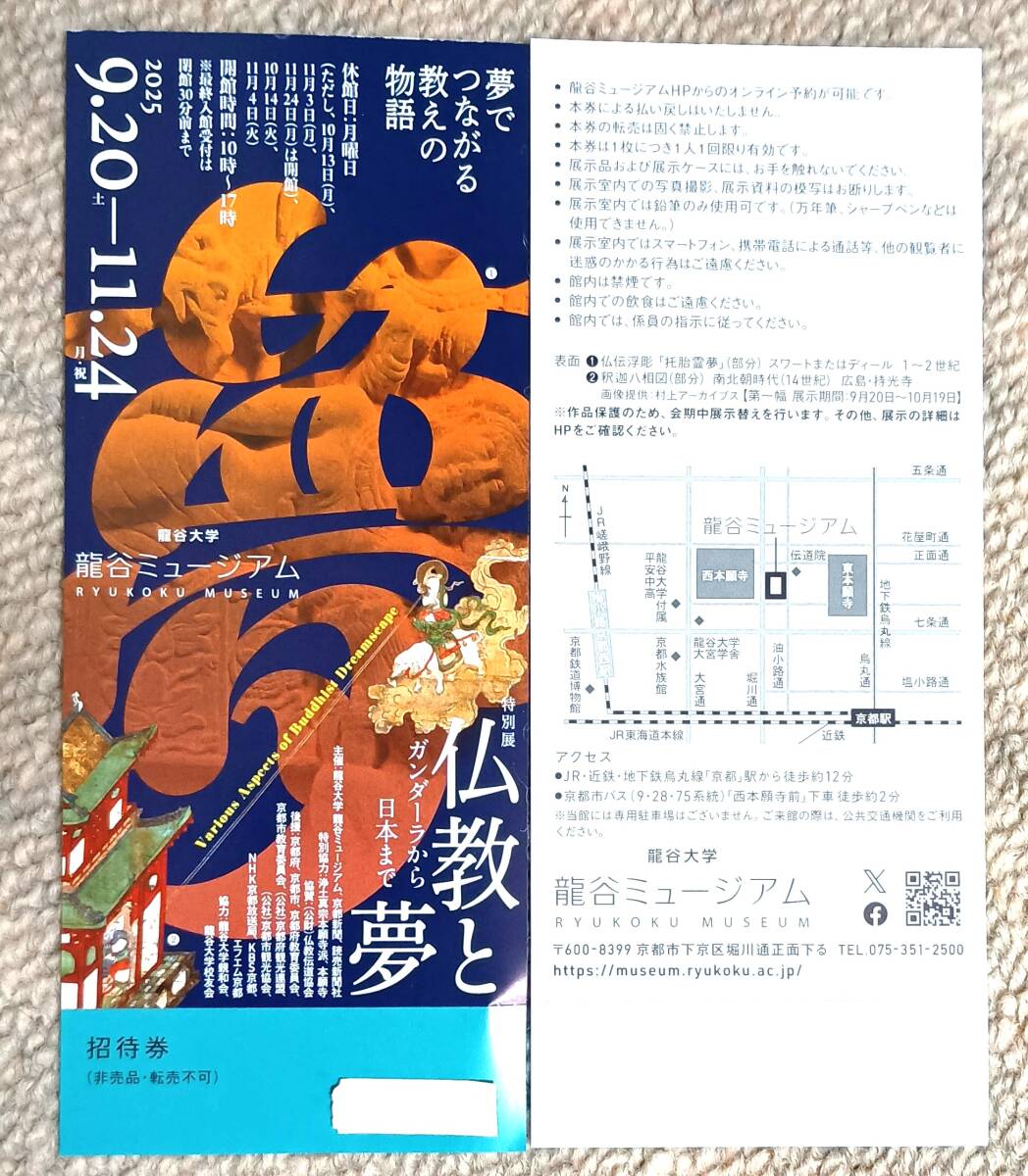 「仏教と夢」龍谷ミュージアム 招待券1枚