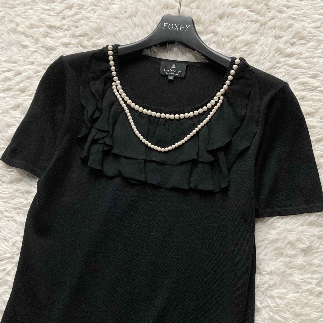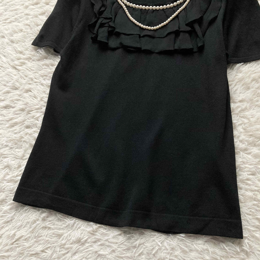 ランバンコレクション LANVIN COLLECTION 半袖ニット セーター プルオーバー シルク・カシミヤ混 フリル 2連パール付き 上品 フォーマル 通勤着