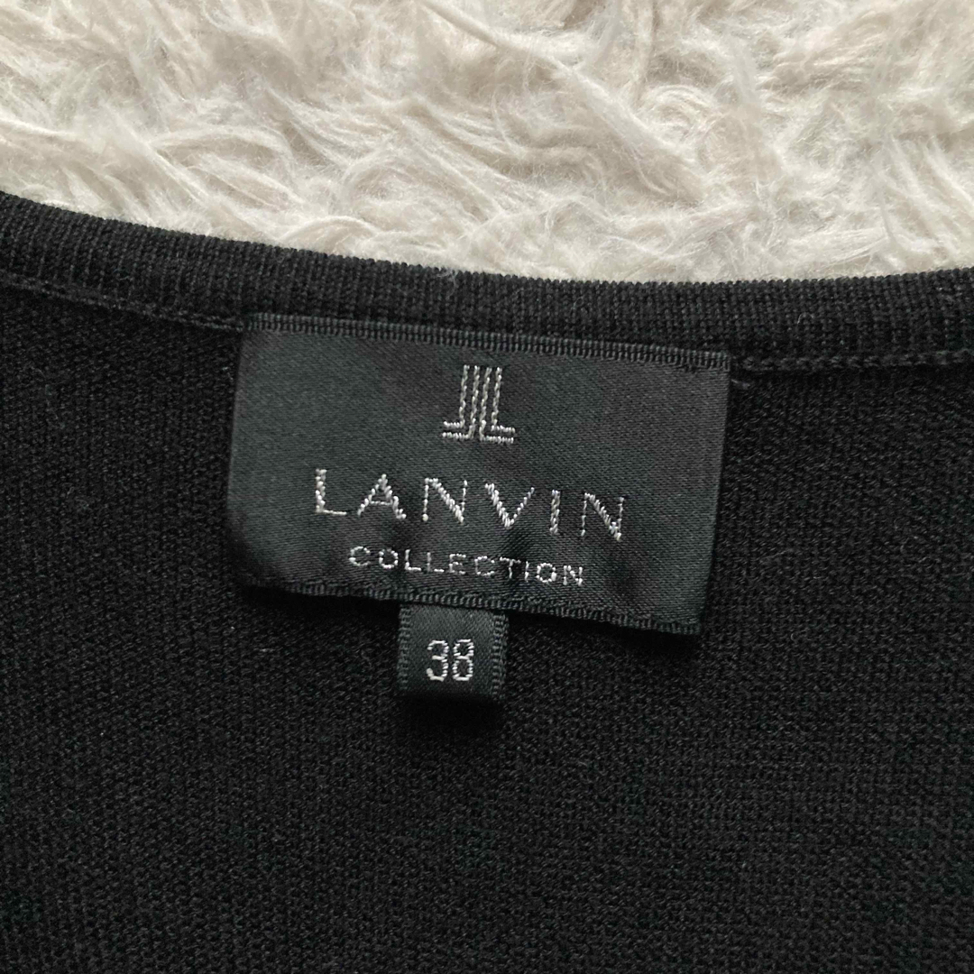 ランバンコレクションのフリルニットです。胸元に施された繊細なフリルとネックレスのような2連のパールが、顔まわりを華やかに見せてくれます。1枚で着映えするので、デニムと合わせてカジュアルダウンしたり、きれいめなスカートやパンツと合わせれば、お出かけやオケージョンにもぴったりです。流行り廃りのないデザインなので、長くご愛用いただけます。