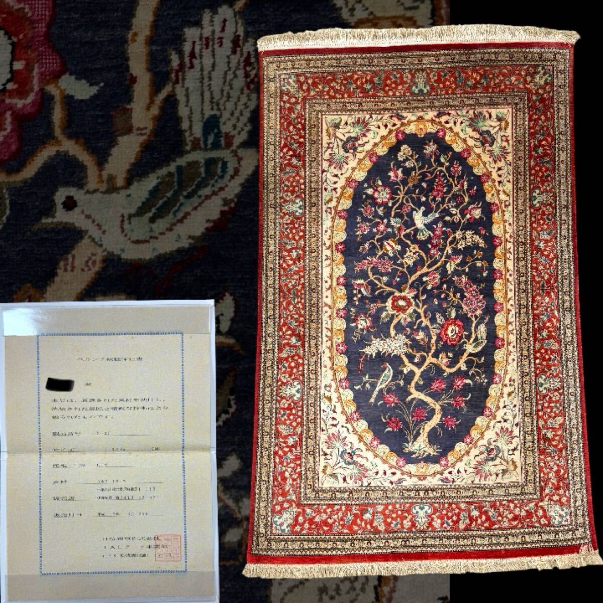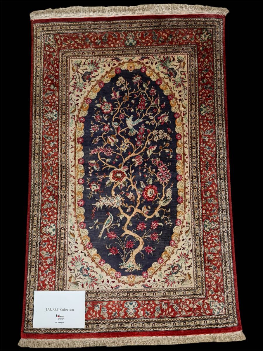 ペルシャ絨毯 保証書付 カーペット マット ラグ QUM 150×95 クム産 玄関マット シルク 100% ラグマット 手織り 高級絨毯 JALアート イラン