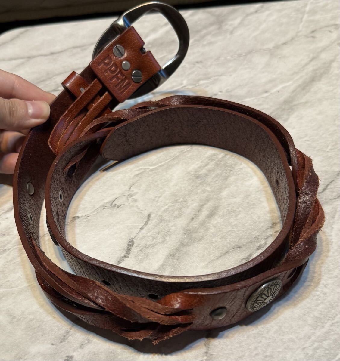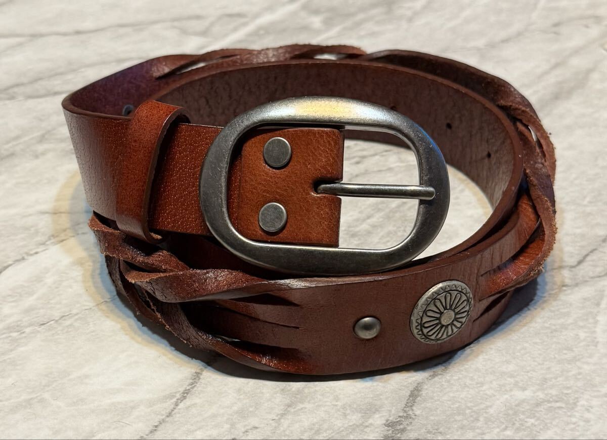 ・上質なレザーを編み込みメッシュでデザインしたコンチョボタンとシルバーバックルのコントラストがお洒落なアーカイブのレザーベルトとなります。
