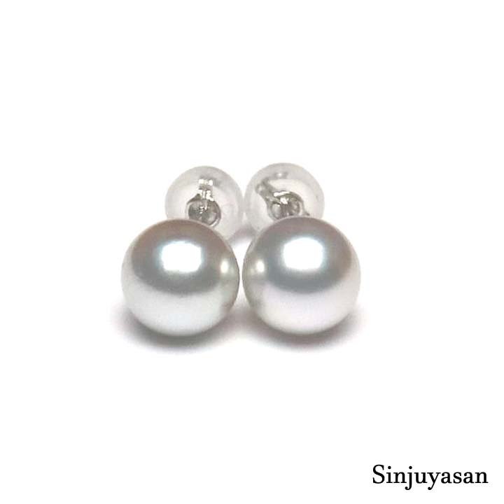 真珠屋さん 冠婚葬祭に【シルバーブルーグレー】最高の色!7.6mm アコヤ真珠 プラチナ Pt900ピアス 伊勢志摩産パール 新品