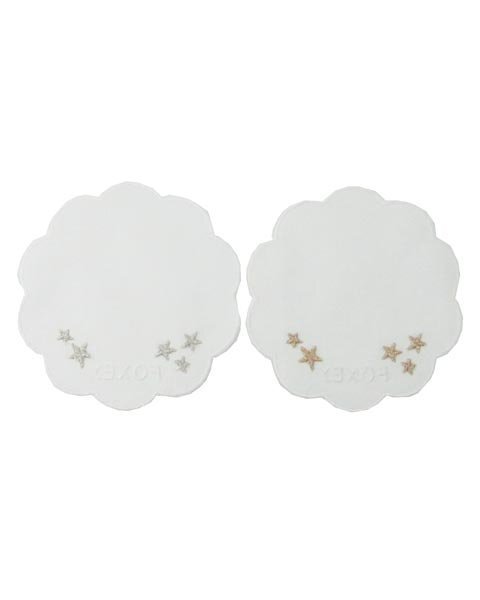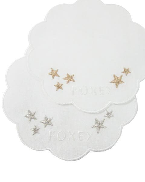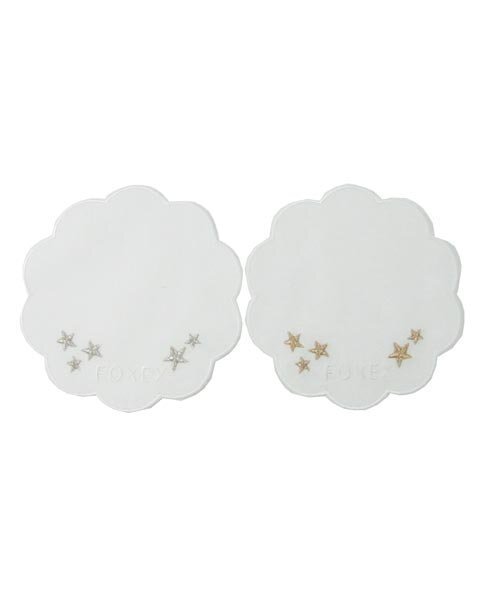 | フォクシーのノベルティーのコースター。金の星の刺繍が素敵なシンプルデザイン。和洋と選ばずお使い頂けます。 |