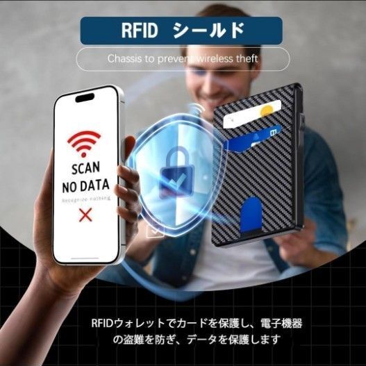 RFIDチップを内蔵することで、クレジットカード、デビットカード、免許証を未知のスキャンデバイスから保護し、個人情報のプライバシーと安全を確保しています。