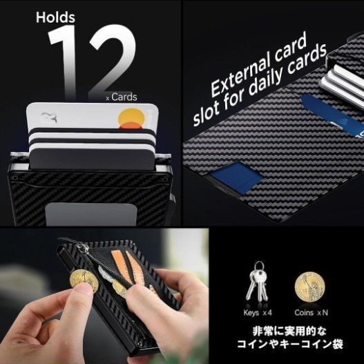 スリムなデザインですが、最大12~15枚のカードを収容可能