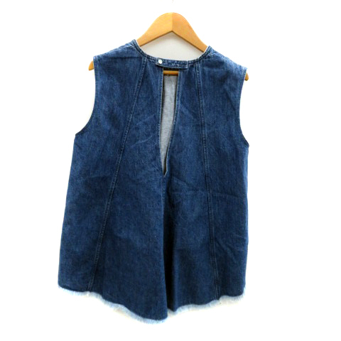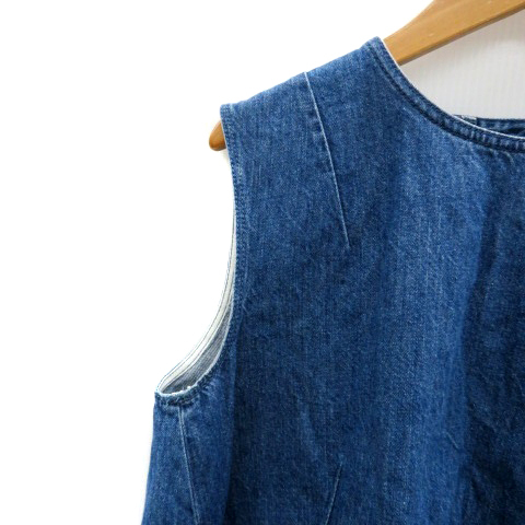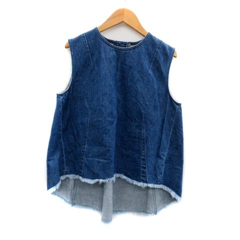 マカフィー トゥモローランド デニム カットソー ラウンドネック ノースリーブ バックシャン カットオフ 36 S 青 レディース