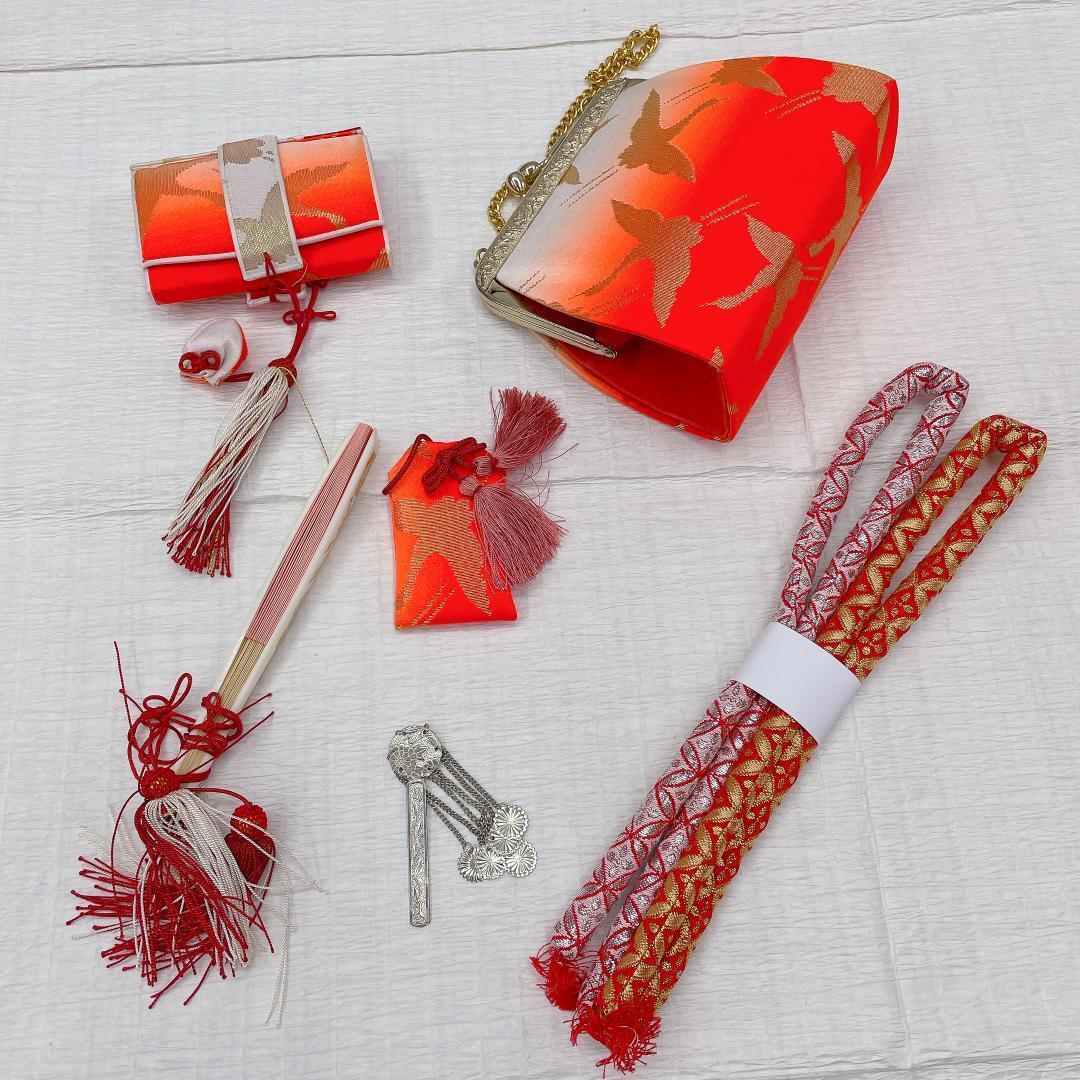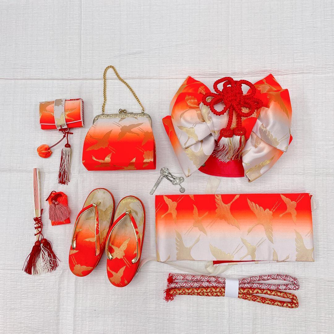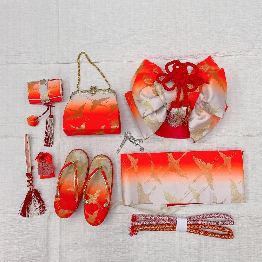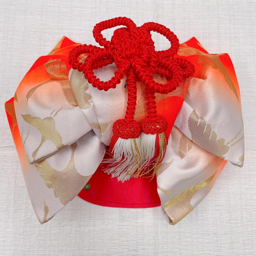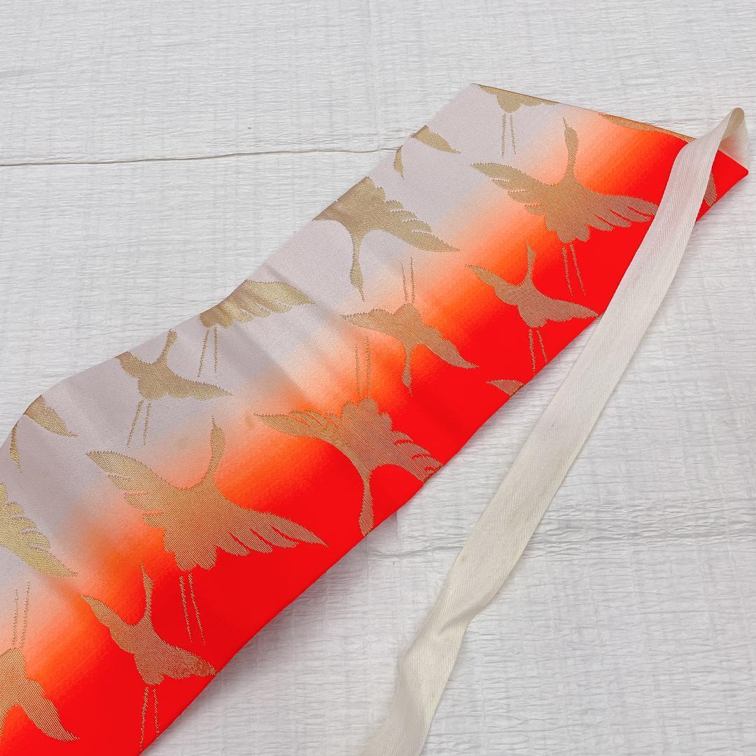 朱色から白のグラデーション。金色の鶴が素敵です。。