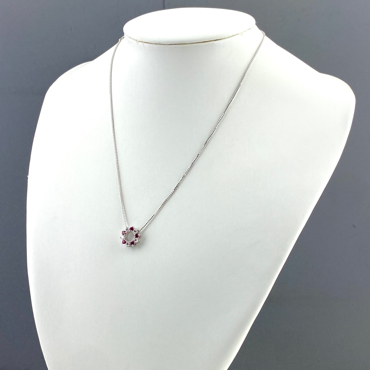 | ルビー:カラット刻印無し、メレダイヤ:0.30ct トップ:Pt900、チェーン:Pt850 中古品の為、若干のキズや汚れ、チェーンにヨレがございます。 |