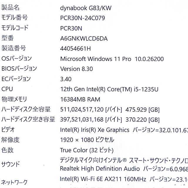 2023《優良美品》プレミアムモバイルノート!【 dynabook G83/KW 】Corei5-1235U/新品NVMeSSD512GB/メモリ16GB/カメラ/Wi-Fi6/MSOffice2021
