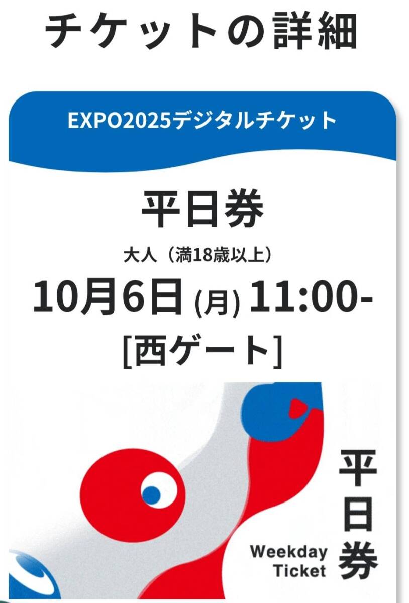 10/6西ゲート11時 EXPO2025 大阪関西万博 チケット 大人 10月6日西ゲート11時予約
