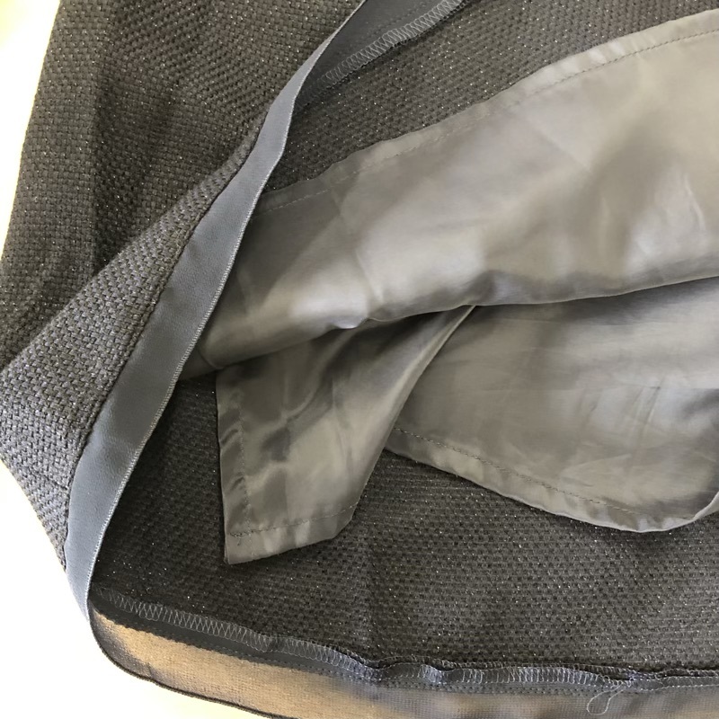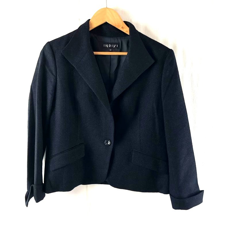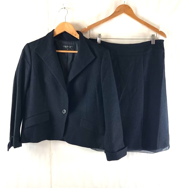 商品名 | インディヴィ INDIVI スーツ セットアップ ジャケット スカート ラメ入り生地 裏地付き フェイクポケット 日本製 黒 42サイズ 965903 |