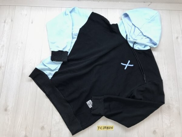 メンズ バイカラー スウェットパーカー L 黒水色 です。