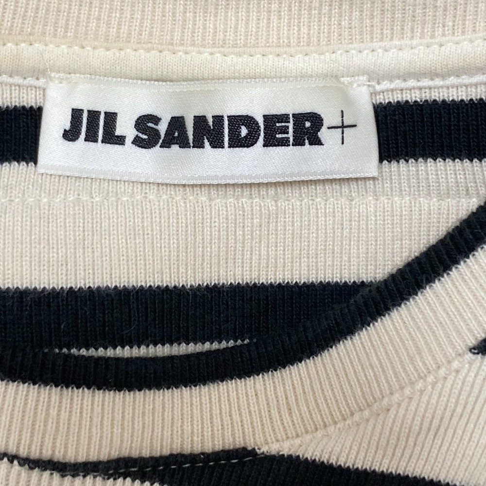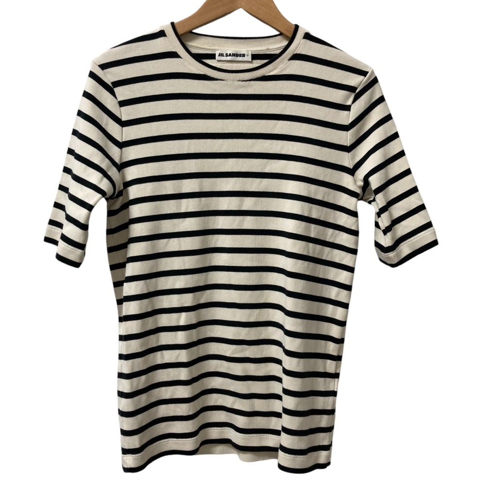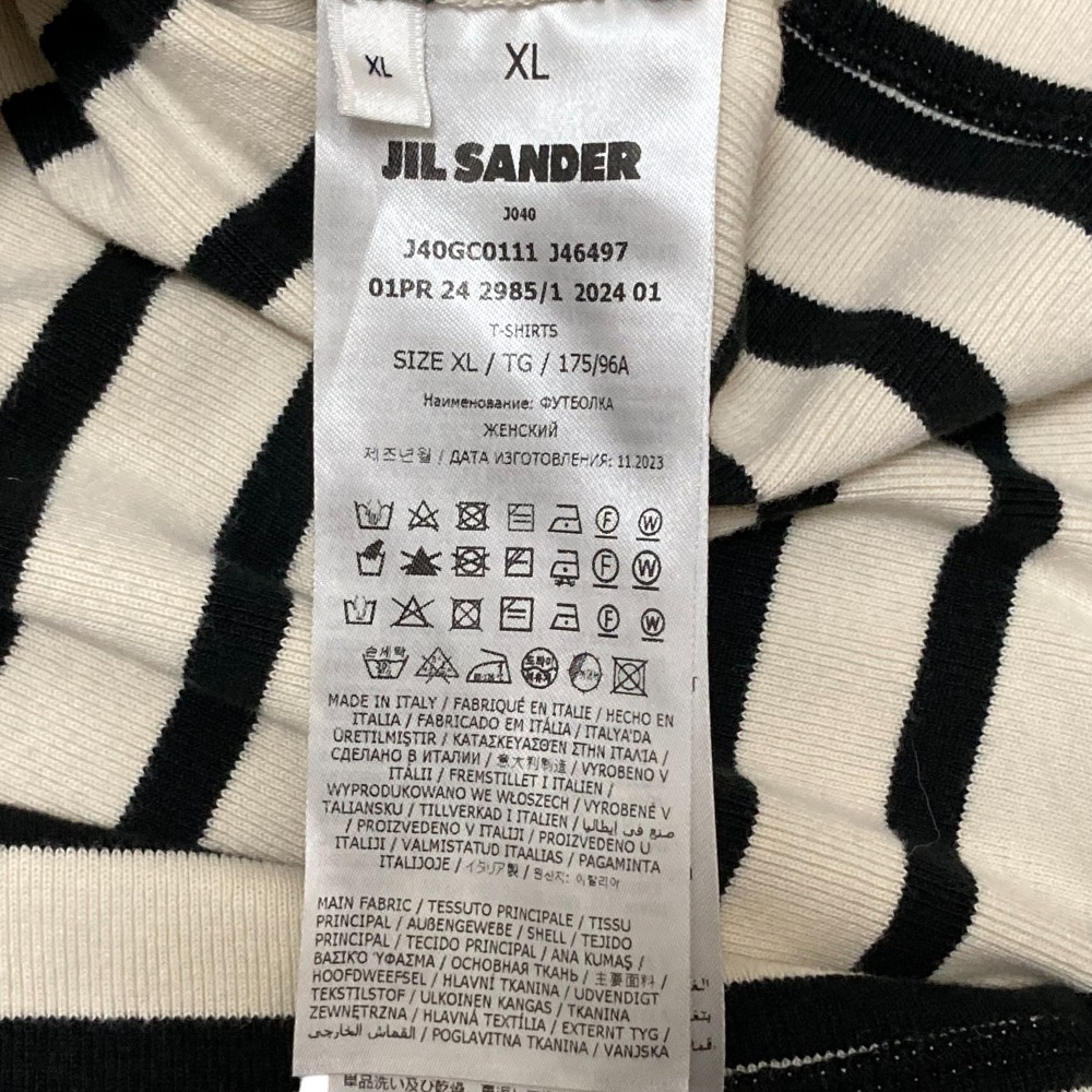良品 24SS JIL SANDER ジルサンダー 半袖ボーダークルーネック ブランドロゴ カットソー XL オフホワイト×ブラック