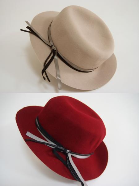 送料無料◆超お得◆2色組◆調節付き◆百貨店仕様◆婦人帽子◆プレーンカラー◆毛100%◆ウール素材◆セミブリムハット(ベージュ&レッド)