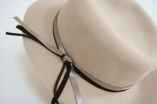 ・帽子の周りには、アクセントになるリボンチャームが施されています。