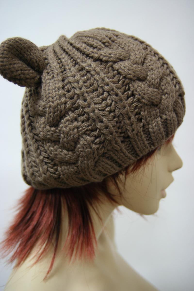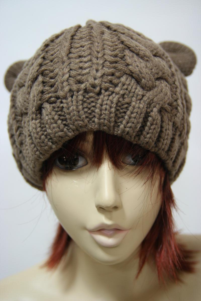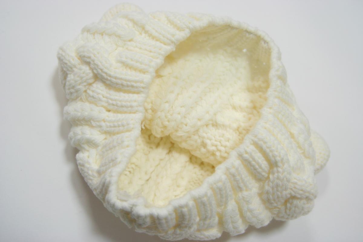 ・手編み風のデザインにネコ耳が付いた可愛い、ふんわりあったかニット帽です。