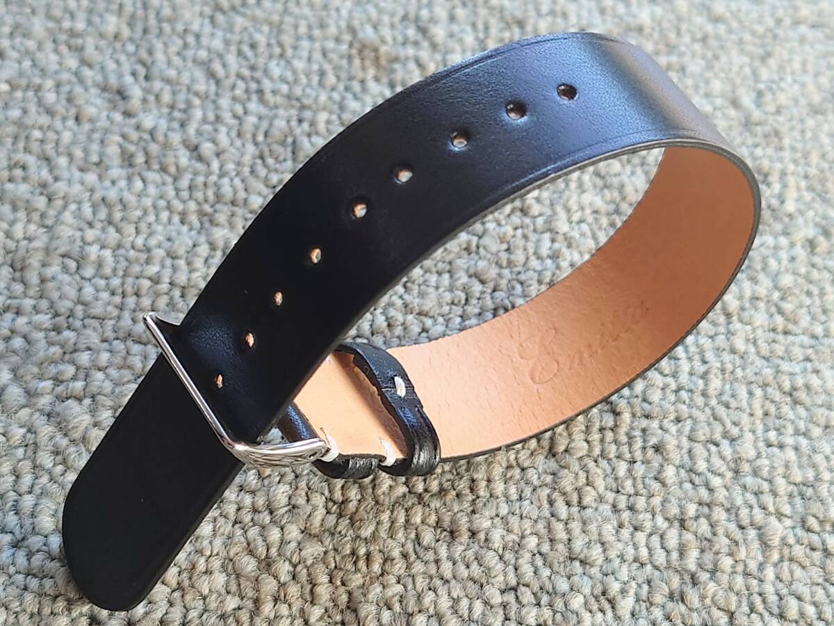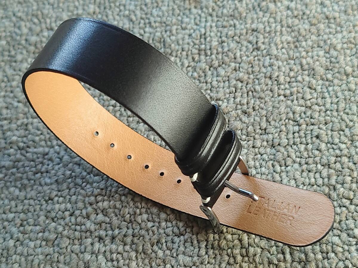 レアな人気の高級牛革引き通し(ストレート)バンドの未使用新品です。