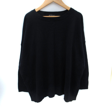 23区 オンワード樫山 ニット カットソー 長袖 ペプラム 46 XL 大きいサイズ 黒 ブラック /SM6 レディース