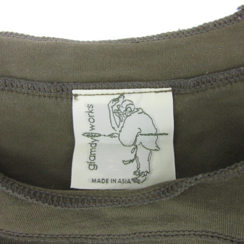 グラムディ ワークス GLAMDY WORKS Tシャツ カットソー 長袖 ラウンドネック 無地 カーキ /YS23 レディース