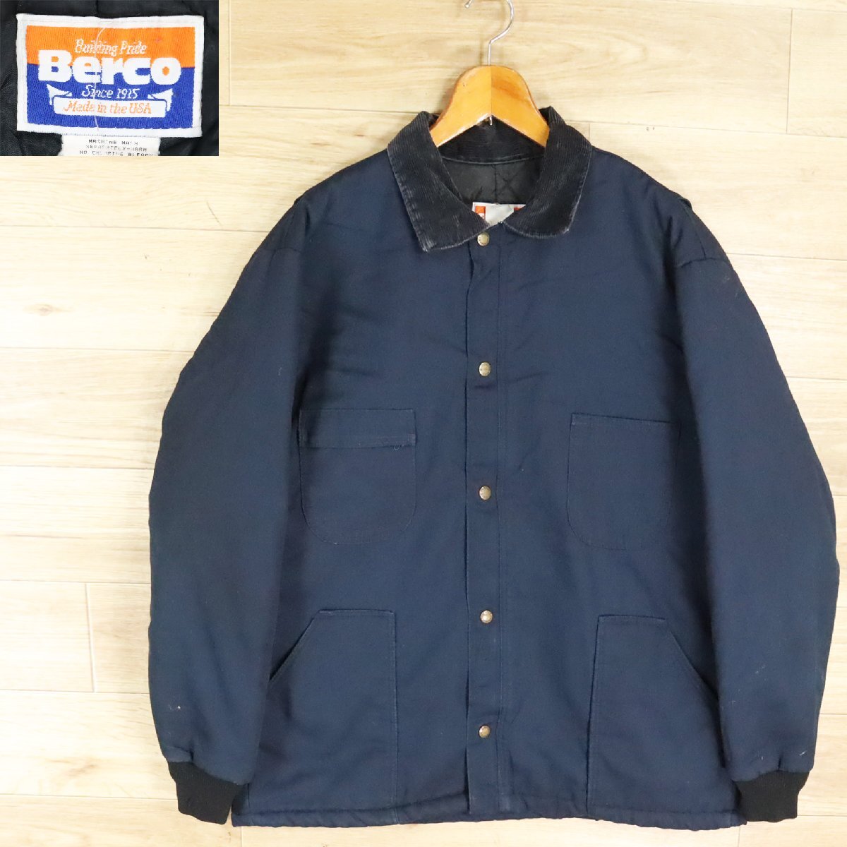 K1K/D8.7-2 アメリカ古着 USA製 Berco 襟コーデュロイ カバーオール ワークジャケット ジップアップジャケット メンズ XL