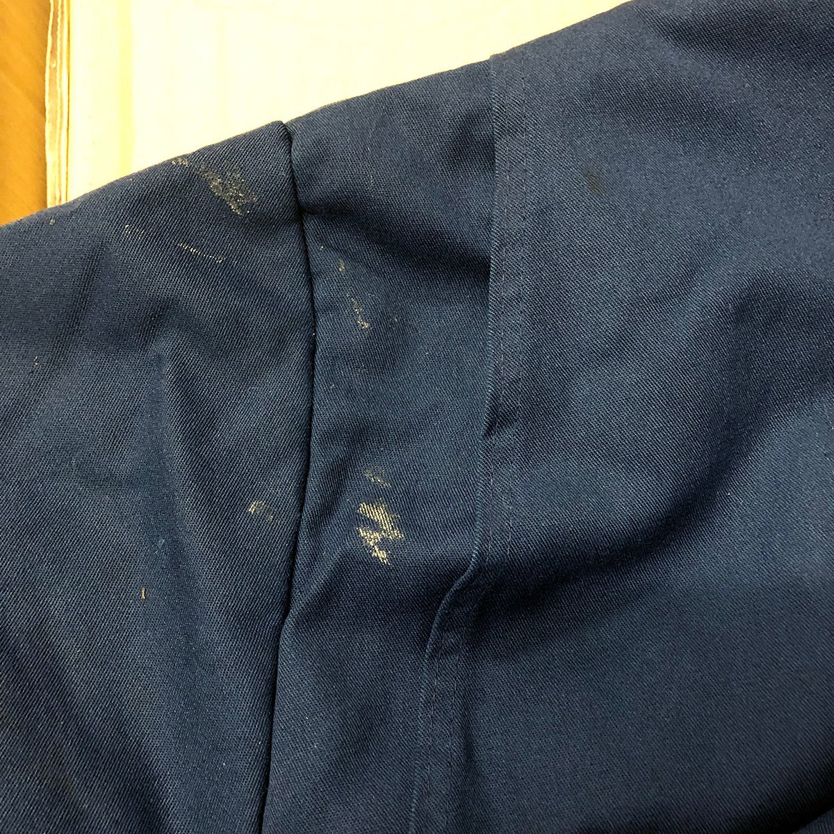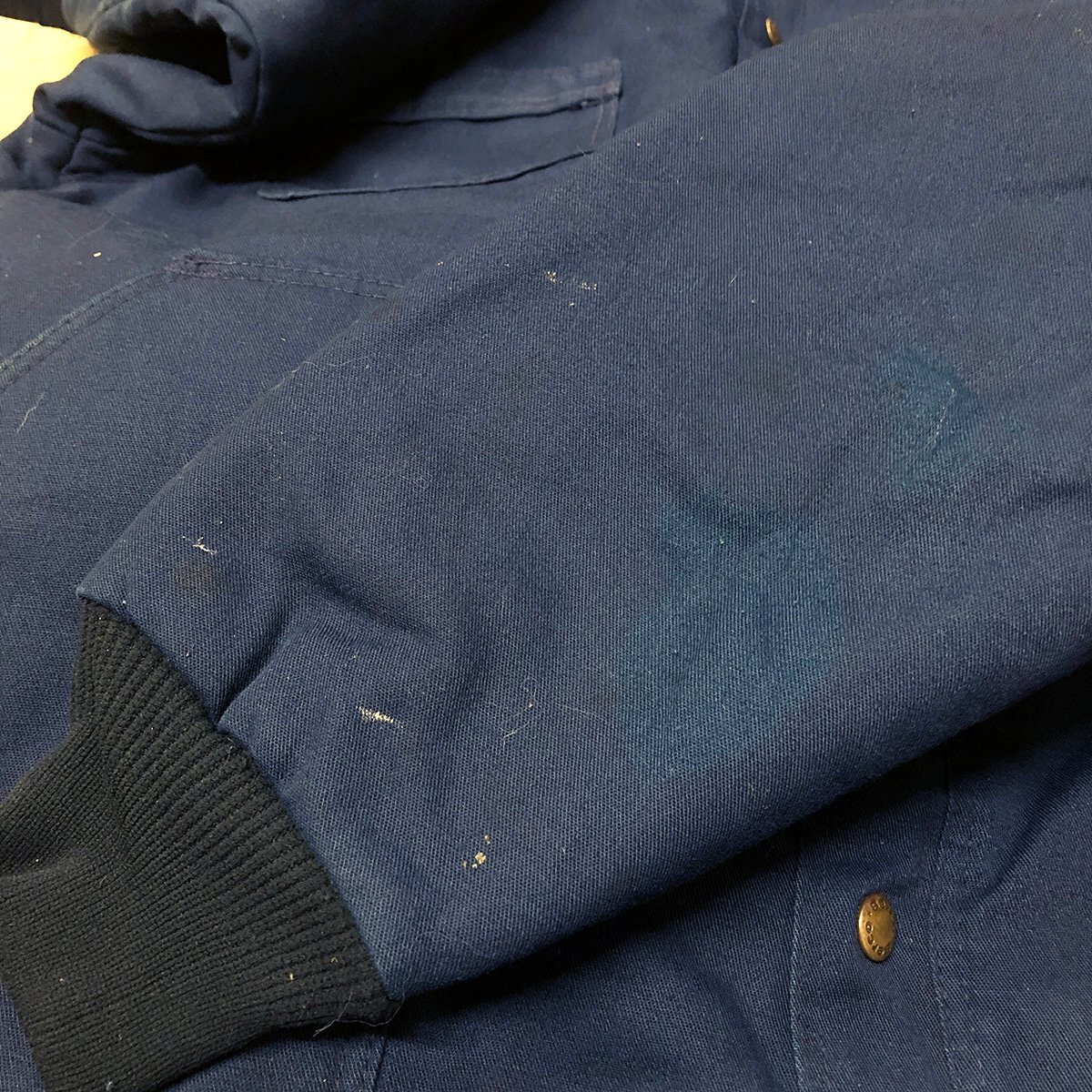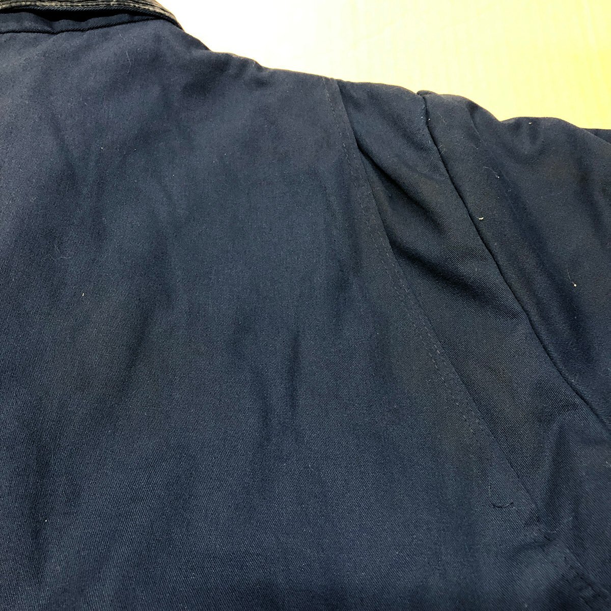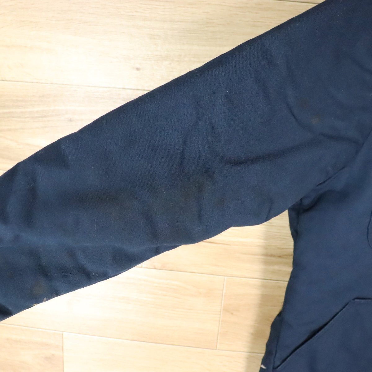 中古品です。使用感があります。両腕や肩回りや腹部など全体的に汚れや擦れ、袖リブにホツレがあります。付属の襟パーツがありません。
