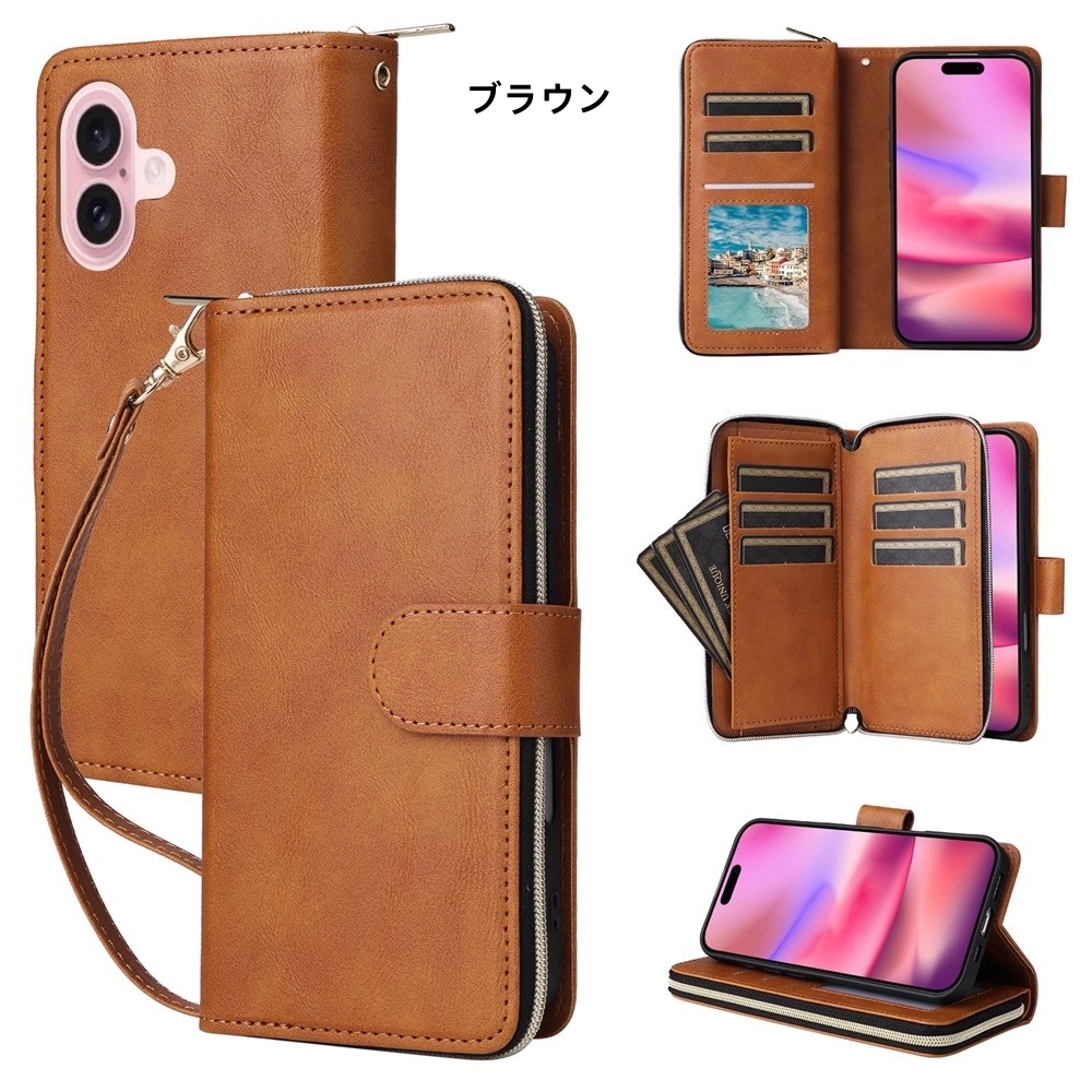 iPhone17 Pro Max (6.9インチ) 用 ケース 9カード収納 ラウンドジップ ビジネス 手帳型 防 保護カバー | |||