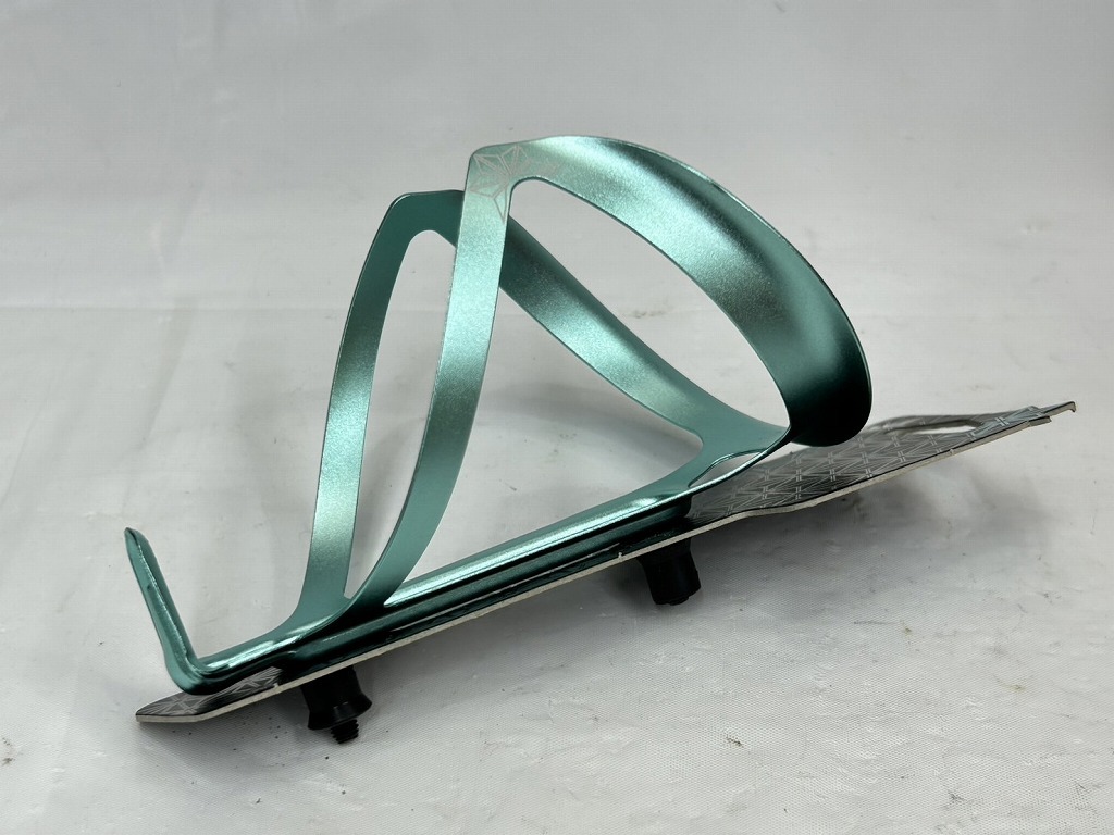 商品説明アルマイト加工されたアルミ製のボトルケージで、重量は超軽量の18g。湾曲を付けたボトルの出し入れ面は、実用的かつ陰影がついてデザイン上のアクセントになっています。すっきりとしたフォルムとレーザーエッチングされたSUPACAZパターンのデザインが際立つボトルケージです。