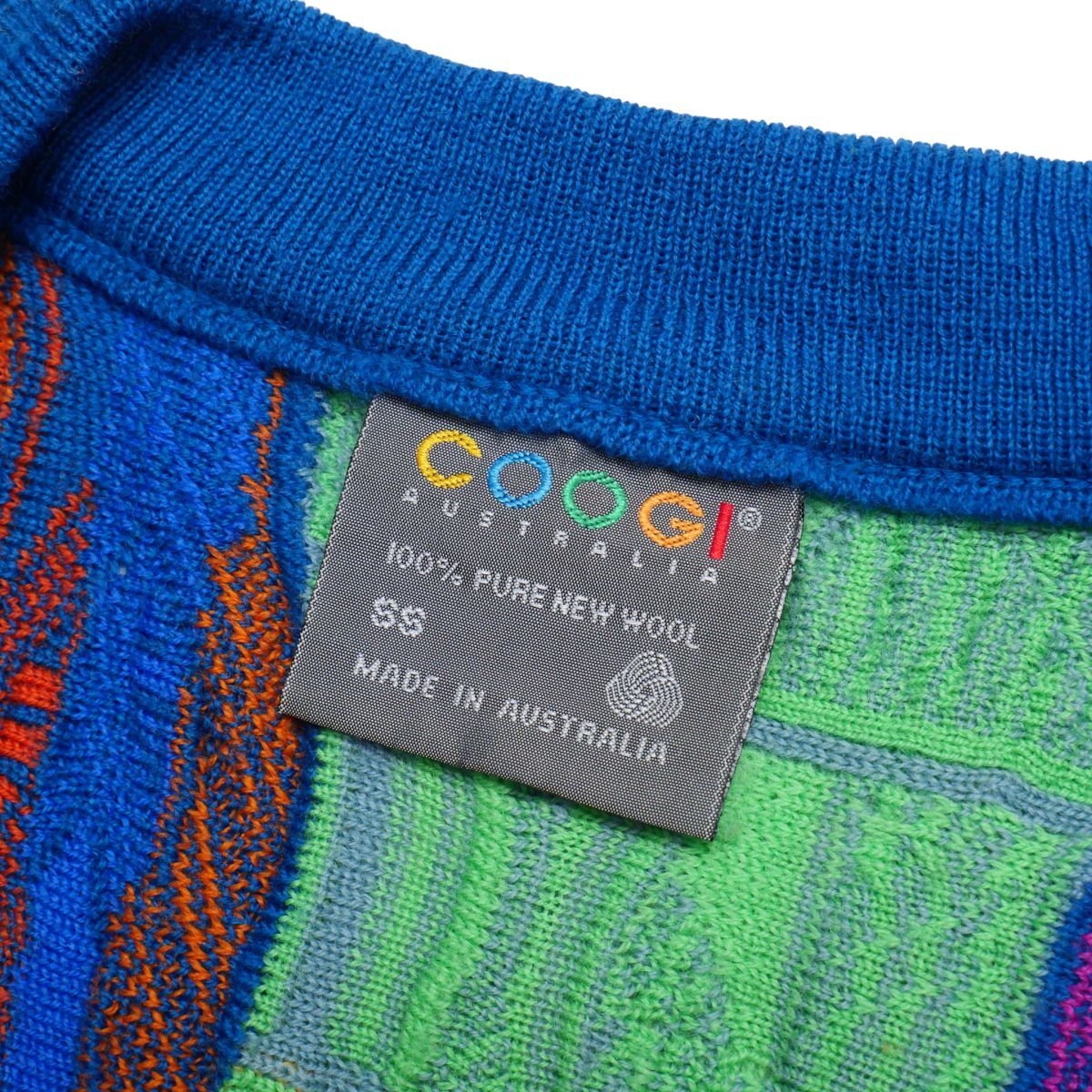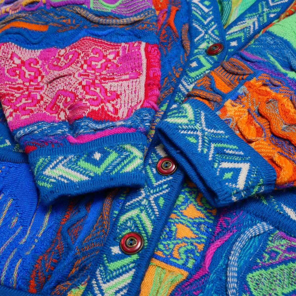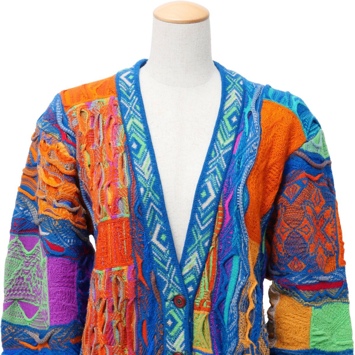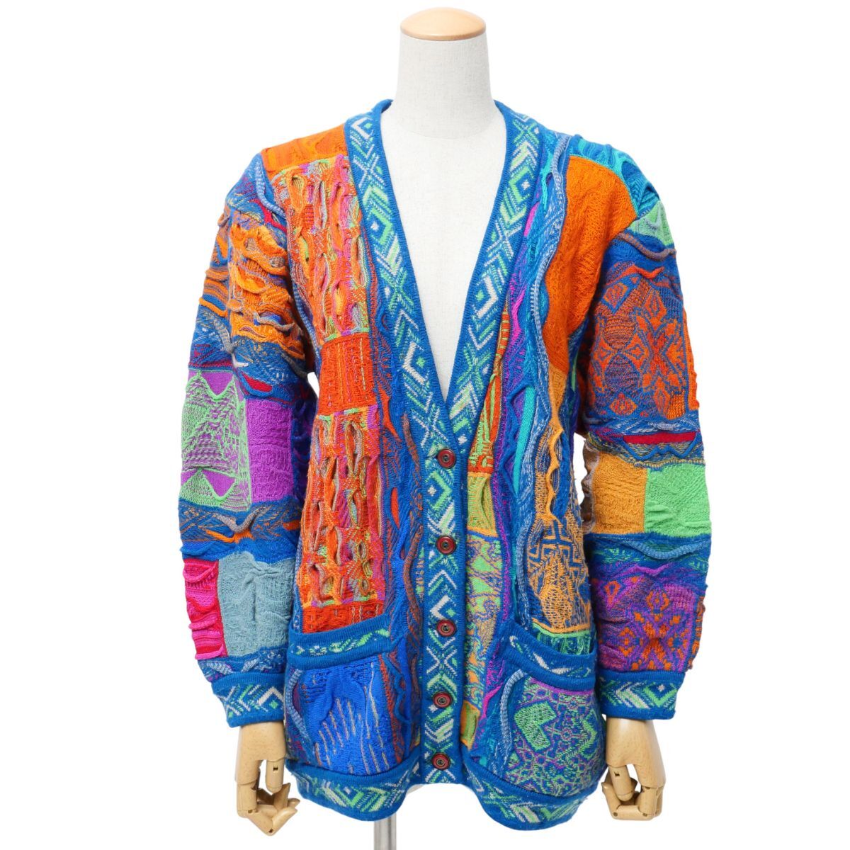 TJ4802☆クージー COOGI ヴィンテージ ウール 3Dニット カーディガン Vネック 長袖 厚手 マルチカラー サイズSS オーストラリア製 | |||
