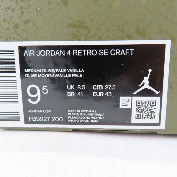 NIKE/ナイキ AIR JORDAN 4 RETRO SE CRAFT/エアジョーダン4 レトロ クラフト オリーブ FB9927-200/27.5 /080 | |||||||||||||||||||||||||