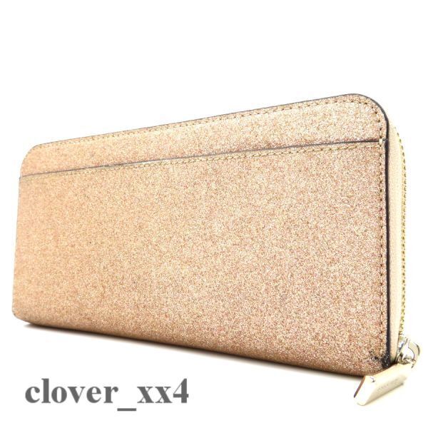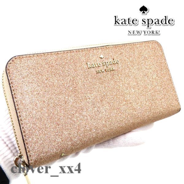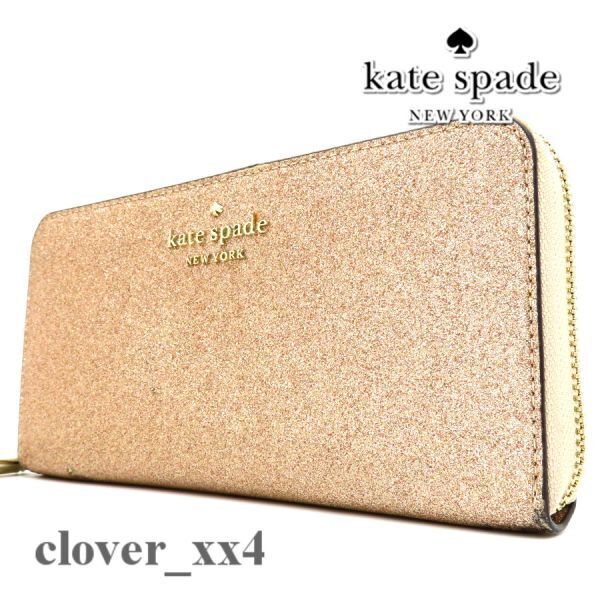 【2022年 グリッター】ケイトスペード 長財布 ラウンドファスナー ティンセル kata spade 財布 ラメ ローズ ゴールド