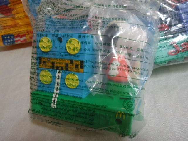 米国にて、個人の方より、購入しました。2000年製。日本マクドナルドで、出たハッピーミールトイの8点セット新品未開封物です。プラスチック製。サイズは、縦約11センチ前後・横約13センチ・奥約4.8センチです。24時間以内に、お手続き入力後、期限内にかんたん決済、出来る方のみ、ご入札をお願い致します。この商品は、1点物です。2512 ※※発送方法は、ゆうパック送料着払い便(持ち込み割引有り・追跡可能・手渡し配達・補償有り・かんたん決済時は、送料0円ですが、送料のみ到着時支払い)です。※※ ☆★★★★★☆送料は、変わりますが、何点でも、同梱包可能です。数点落札されましたら、まとめて取引を、選択お願いします。☆★★★★★☆
