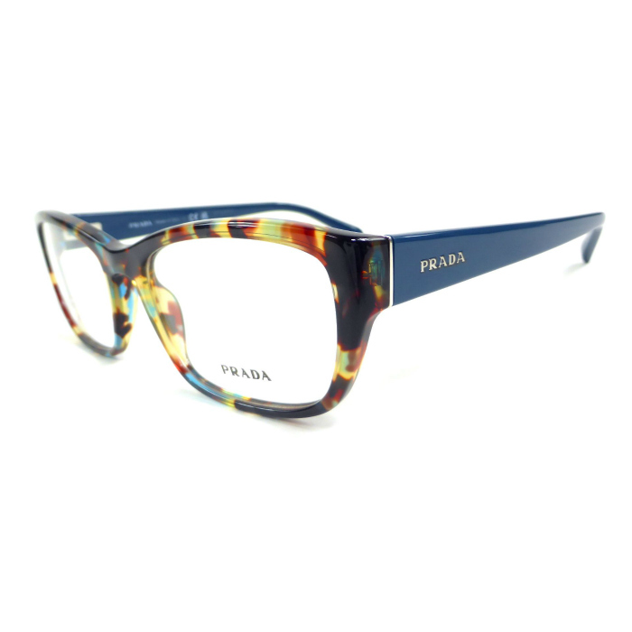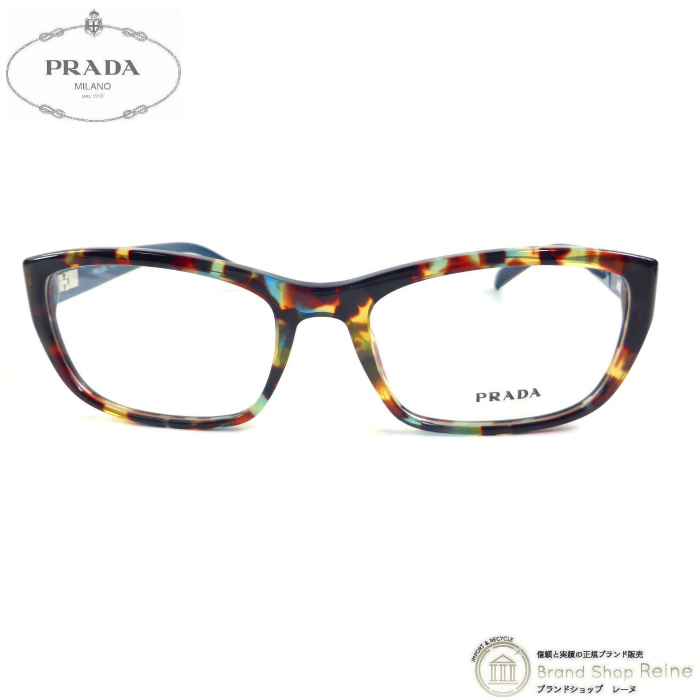 プラダのメガネフレームです。べっ甲柄のスクエア型フレームにテンプルに施されたロゴがポイントのカラフルなデザイン。ファッションのアクセントとして、大人の雰囲気を演出したコーディネートが楽しめるメガネです。 |