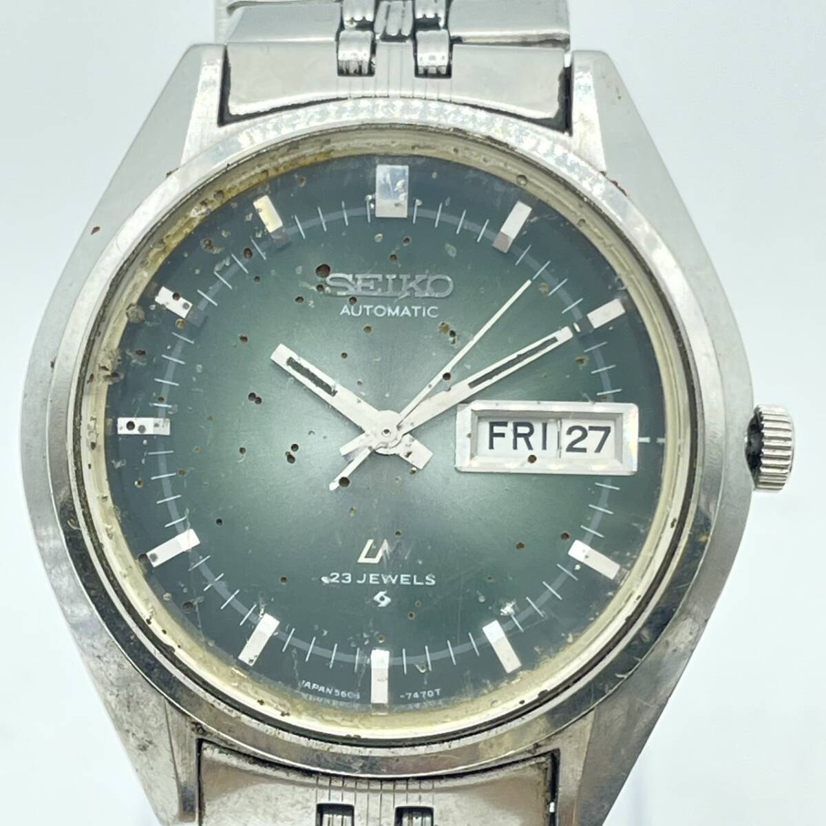 商品名 ・腕時計 SEIKO セイコー LM ロードマチック 5606-7191 AOTOMATIC 自動巻 メンズ ブランド ・SEIKO 付属品 ・ サイズ ケース幅:約36.7㎜ ラグ幅:約18.0㎜ 重量:約74.3g ※若干の誤差がある場合がございます。 状態について ・ランク →【B】 キズ・汚れなど、使用感が見受けられますが、 中古品としては比較的良好な状態です。 ・コメント →針の稼働は確認できましたが、出品時に振ったり巻いたりして針が動いた状態であり長時間の稼働は行っておりません。 →風防に小キズ、くすみ、汚れの付着があります。 →画像の一部にモザイクの加工がしてあります。 →状態は画像にてご確認ください。 ───────────────[ 状態ランク表 ]──────────────── 【N】 新品・未使用品の新古品です。 【S】 キズ・汚れがほとんど見受けられず、非常に状態の良い商品です。 【A】 わずかにキズ・汚れがありますが、全体的に状態の良い商品です。 【B】 キズ・汚れなど、使用感が見受けられますが、 中古品としては比較的良好な状態です。 【C】 キズ・汚れ・型崩れなどの目立つ使用感がありますが、ご使用には問題のない商品です。 【D】 通電の確認はできておりますが、稼働や動作の確認は行っておりません。 【E】 破損や欠損などが見受けられる商品ですが、素材やパーツとしての価値があり、リメイクや部品取りにおすすめの商品です。 ※ランクは社内基準となりますので、参考としてご参照ください。 ──────────────────────────────────────── 送付方法 ・ゆうパック(着払い) 60サイズ ※千葉市美浜区からの発送となります。 ※出品時に商品を梱包しているため、「同梱不可」となります。 ※こちらの商品は「発送のみ」の対応となります。 防犯上の観点から、「引取り限定」「家財便または引取り」の商品以外は直接の引取りはお断りさせていただいております。 | |||