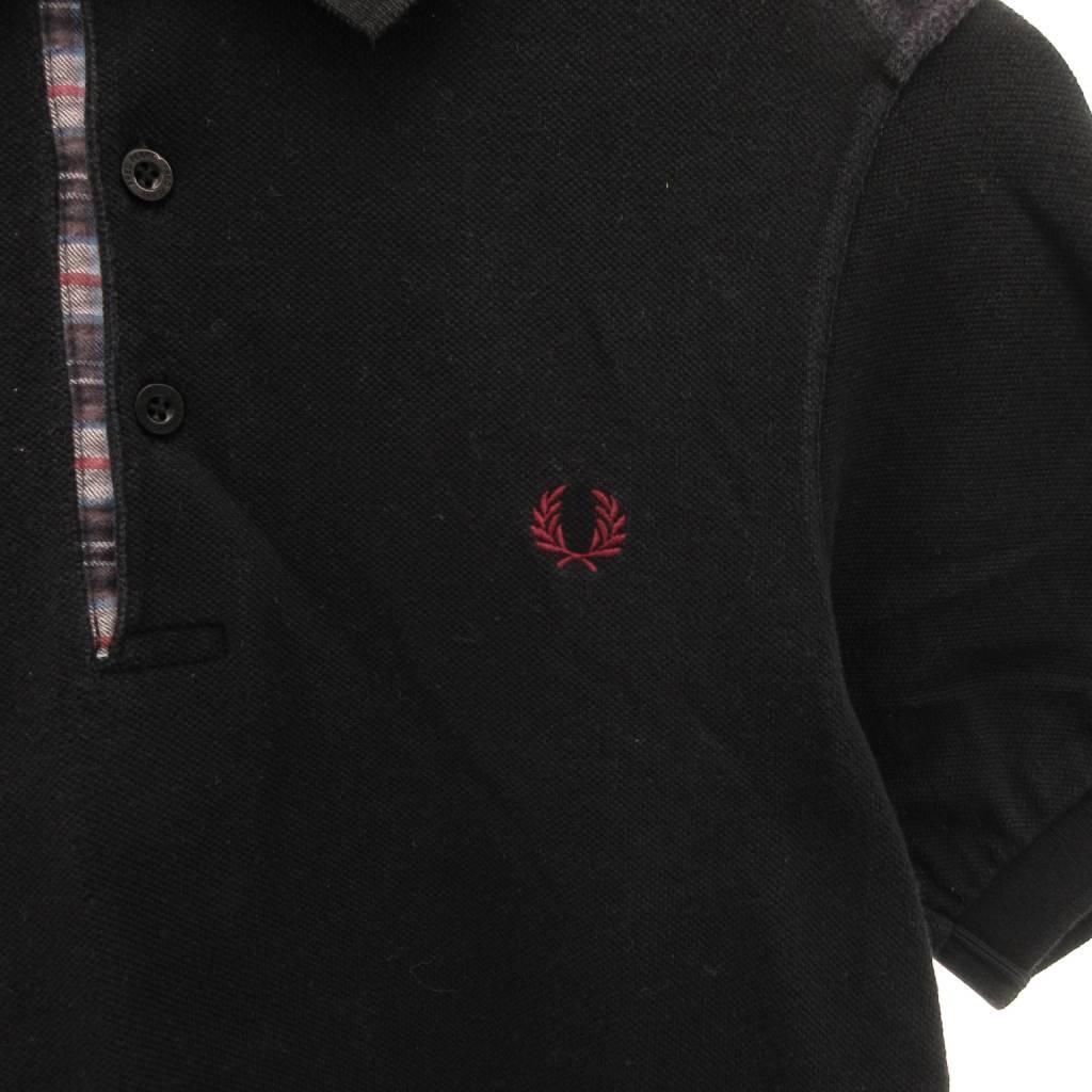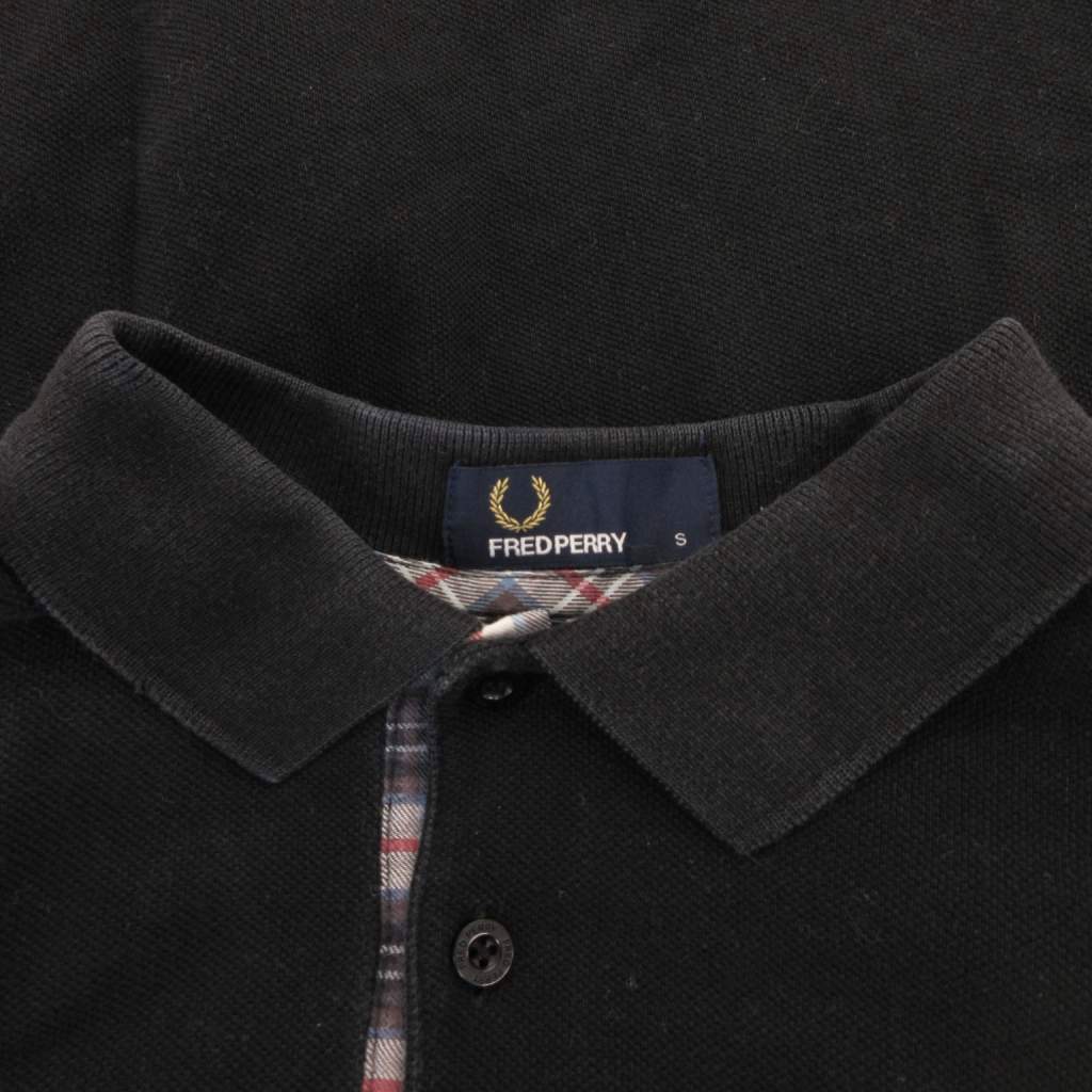フレッドペリー FRED PERRY ポロシャツ フランネル切替 ロゴ刺繍 半袖 S 黒 ブラック /FF ■YHS4