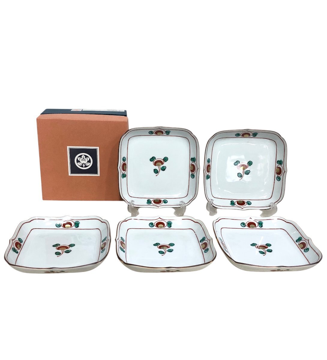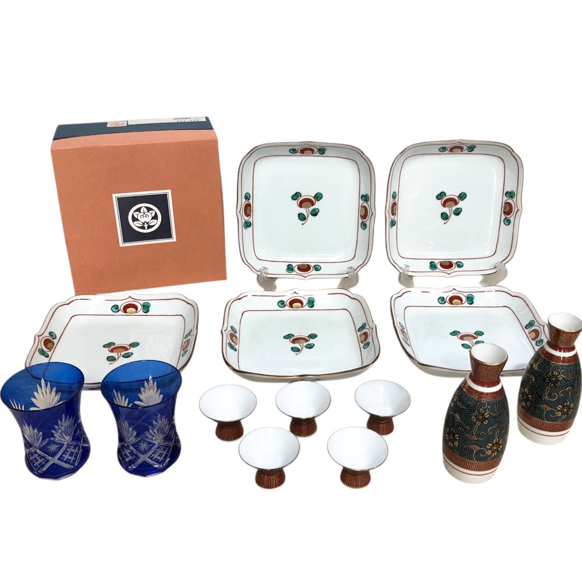 蘇さ(MtY2220) 和食器 切子グラス 丸谷焼 橘吉 花柄 四角皿 徳利 お猪口 おまとめ 中古品 100サイズ