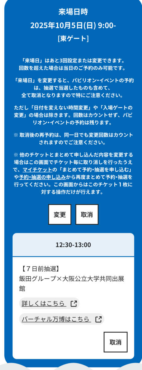 変更をするとパビリオン予約もなくなってしまうのでお勧めはできません。