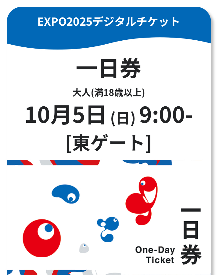 大阪万博 10/5 東ゲート 9時 大人1枚 飯田グループ × 大阪公立大学共同出展館当選 10月5日(日) 9:00入場 関西万博 EXPO2025 ①