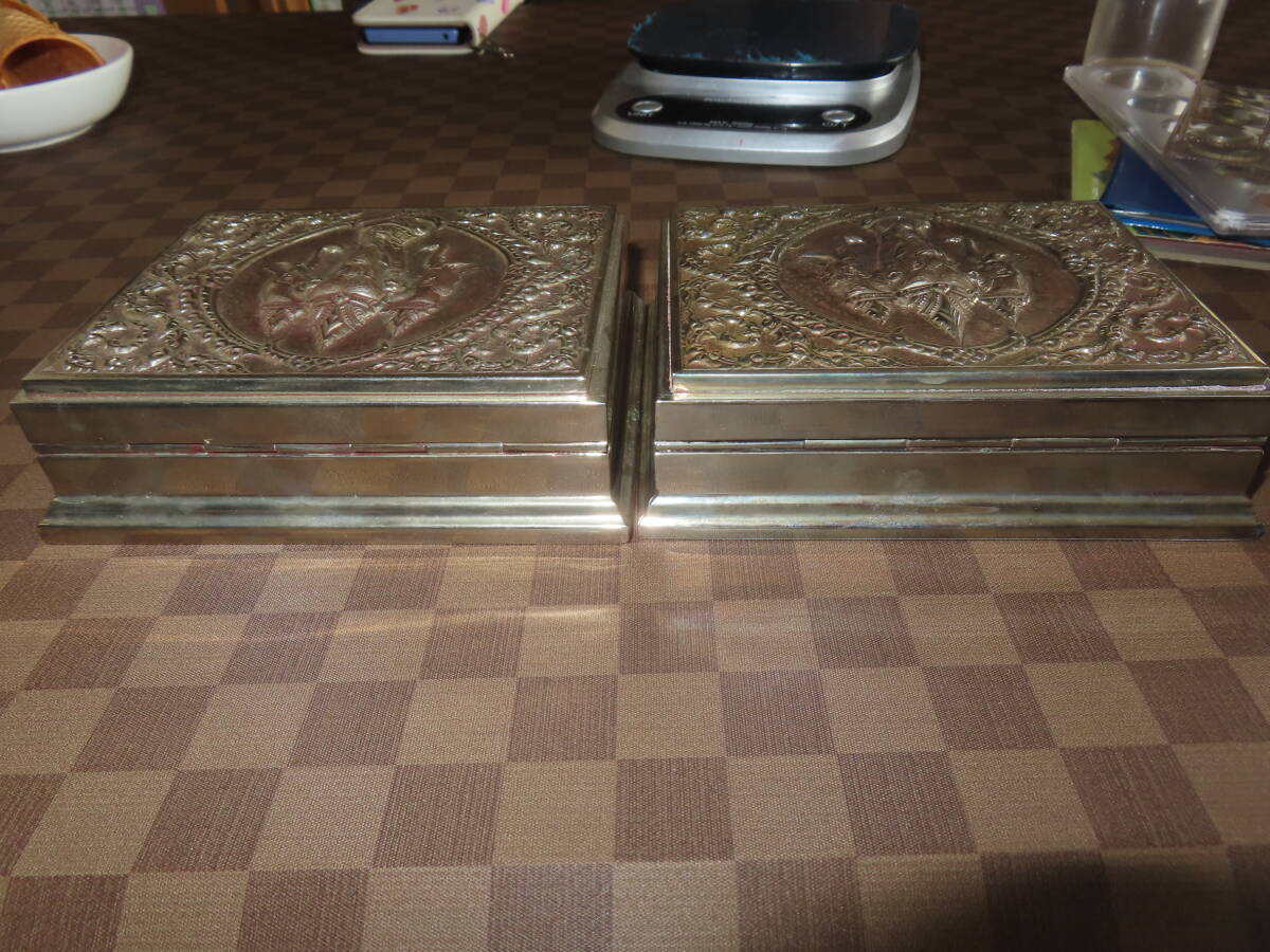 | 銀製 煙草入れ 木製ケース 2点 669g タイ製 | ||