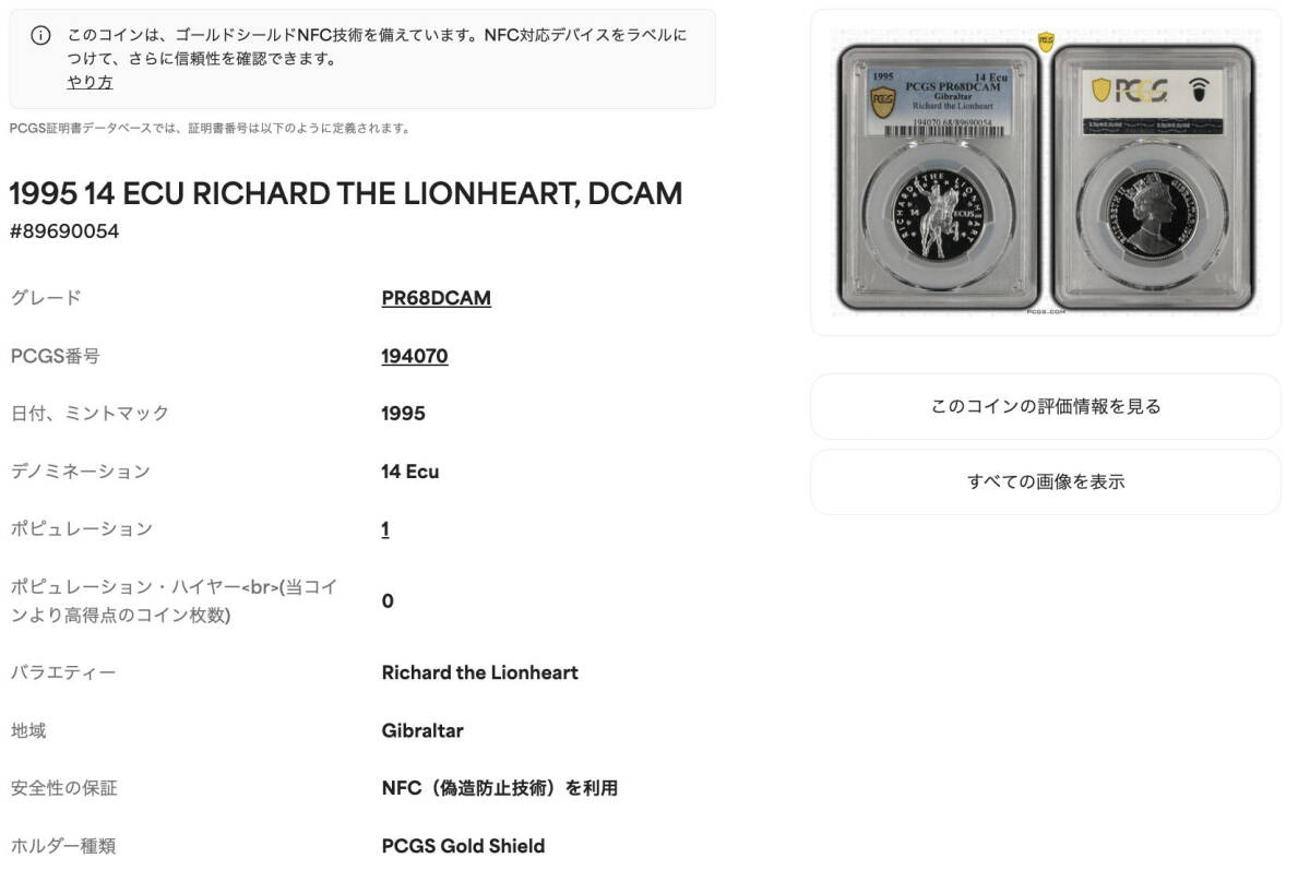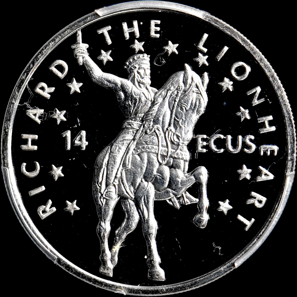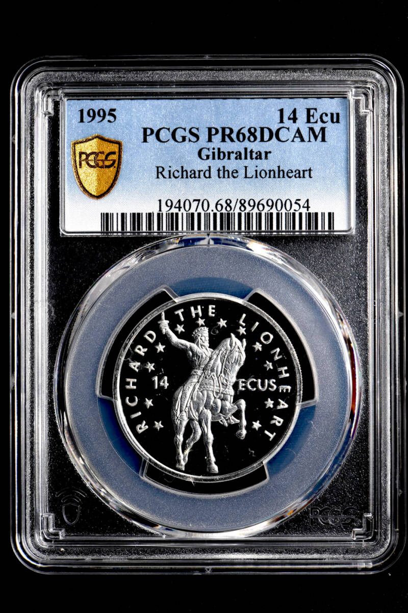 ★金終 【PCGS PR68DCAM ★P社唯一のTOP最高鑑定】1995 ジブラルタル 獅子心王リチャード 14Ecu銀貨 //世界コイン 古銭【決済期限火曜日】