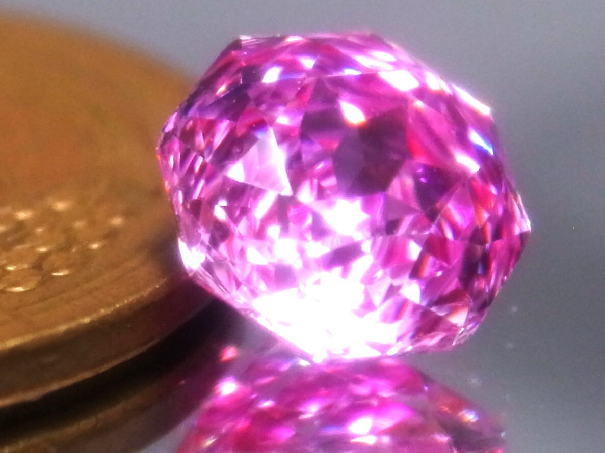 4.35ct a 8㎜ 新品・新色・最先端技術のレーザー光線によるローズフラワー8角カット・シャングリラピンクカラーキュービックジルコニア