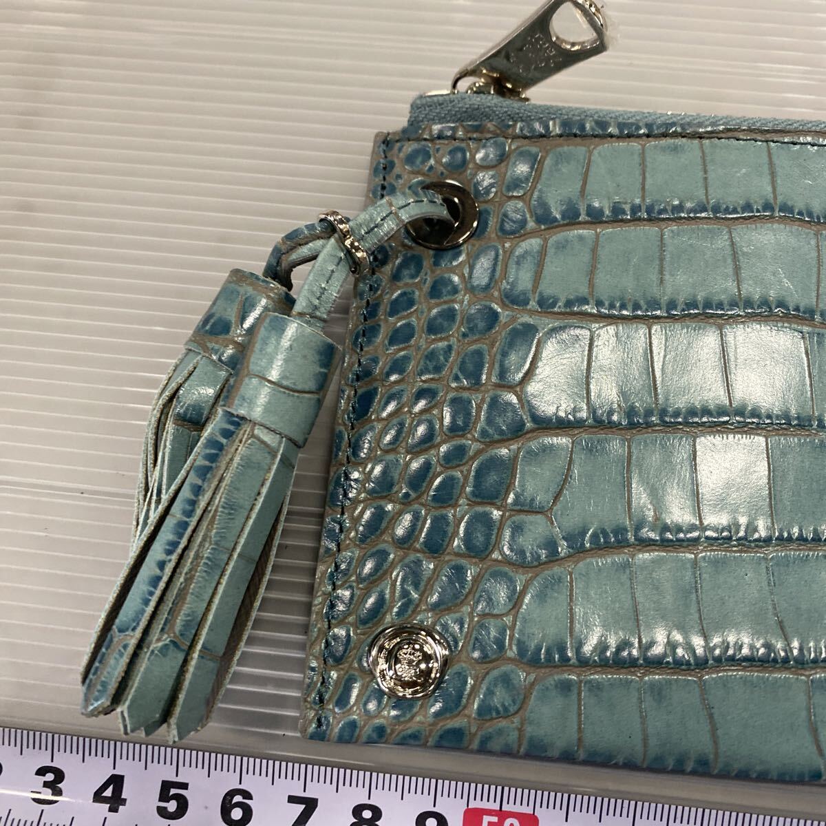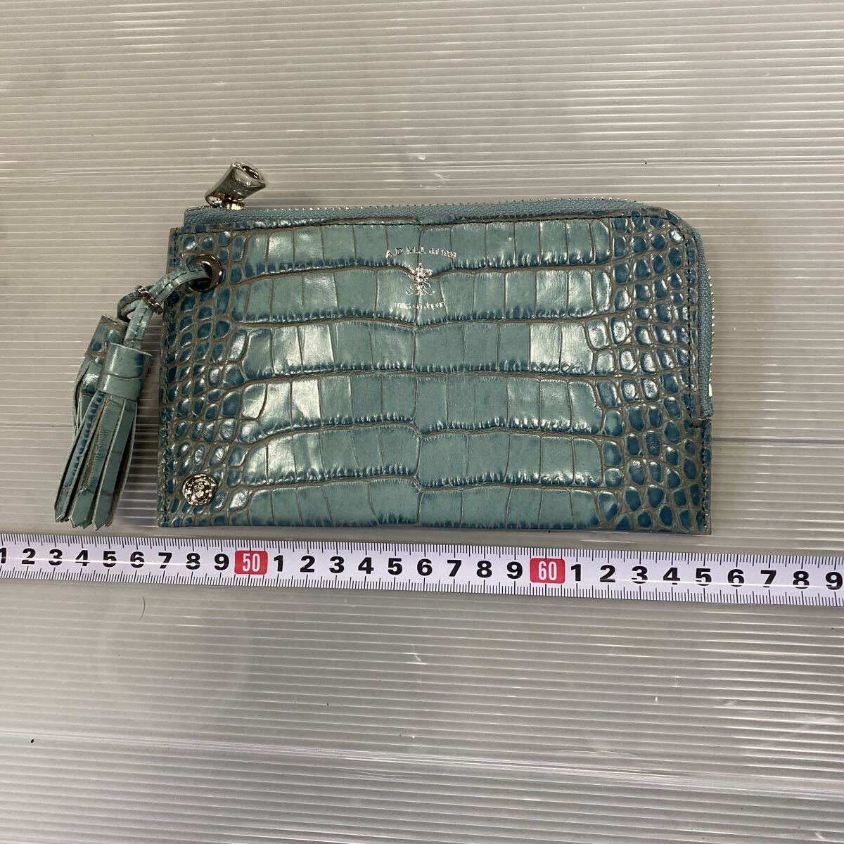 A.D.M.J. ブルー クロコダイル型押し タッセル付きオーガナイザーパース 財布 レディース長財布 未使用品 本体のみ ファッション 小物