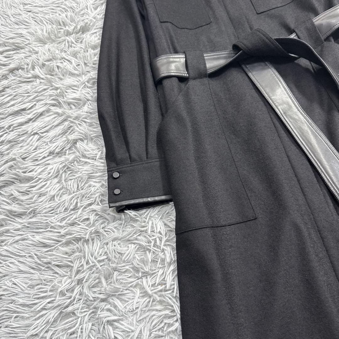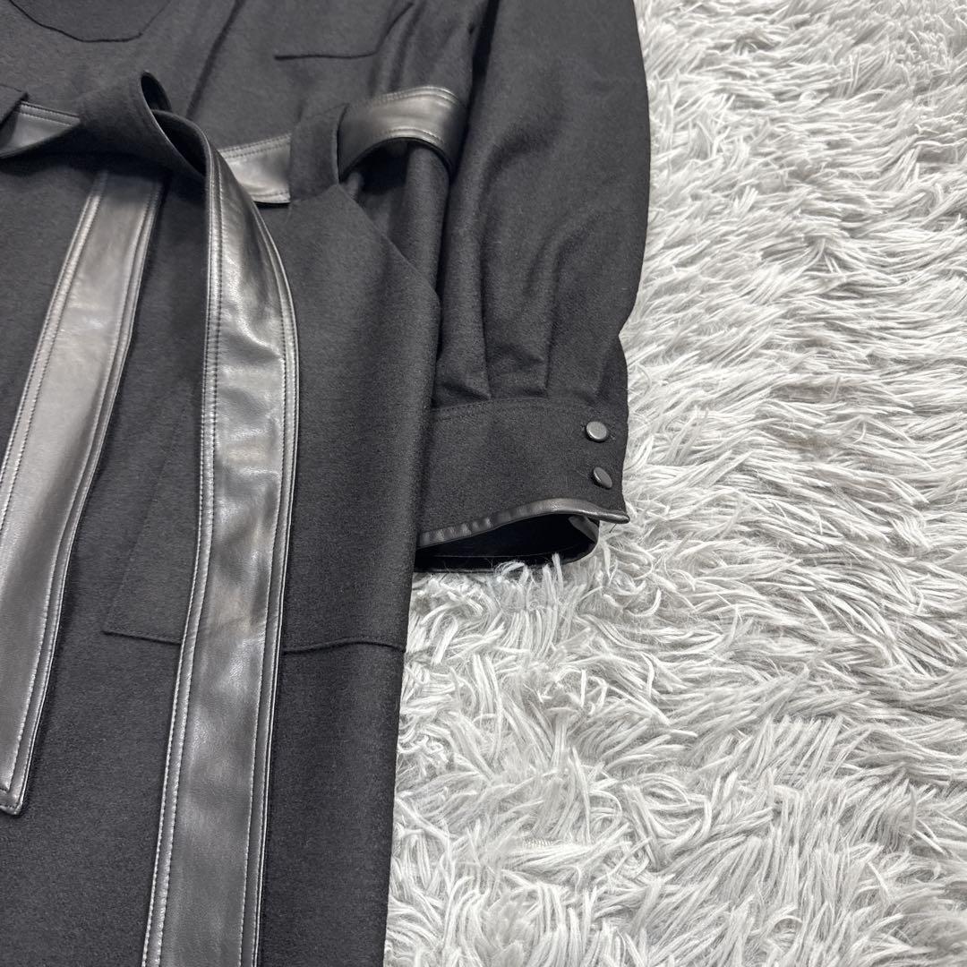 また、袖口を折り返すとフェイクレザーがアクセントになるような仕様に。ウエストのリボンベルトもジャージー素材とフェイクレザー素材の表面と裏面で、違った印象が楽しめます。