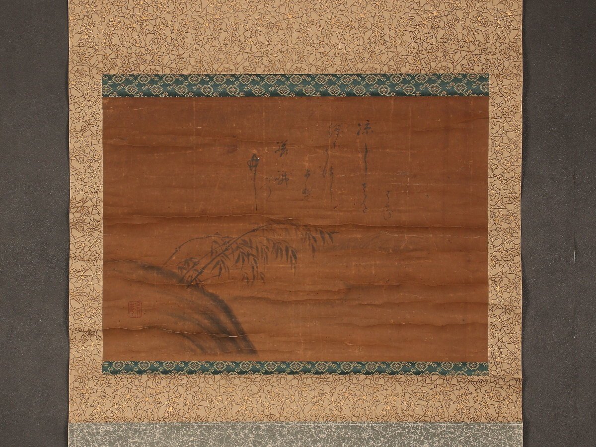【模写】【伝来】am7292〈松尾芭蕉〉竹画賛「涼しさ~」俳聖 江戸時代中期 三重の人