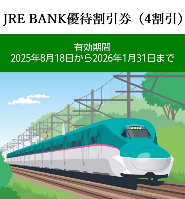 JRE BANKの4割引優待券1枚です。有効期限は2026年1月31日です。