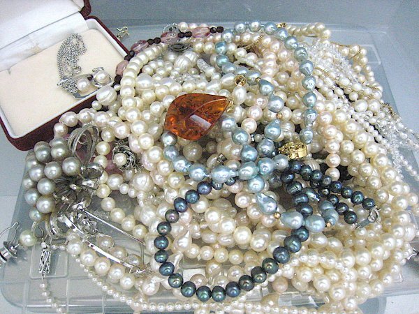 ★34点★K18金具琥珀ペントップ1個あり・淡水パールネックレス・天然×淡水ネックレス・鼈甲ネックレス他いろいろ 約740g★