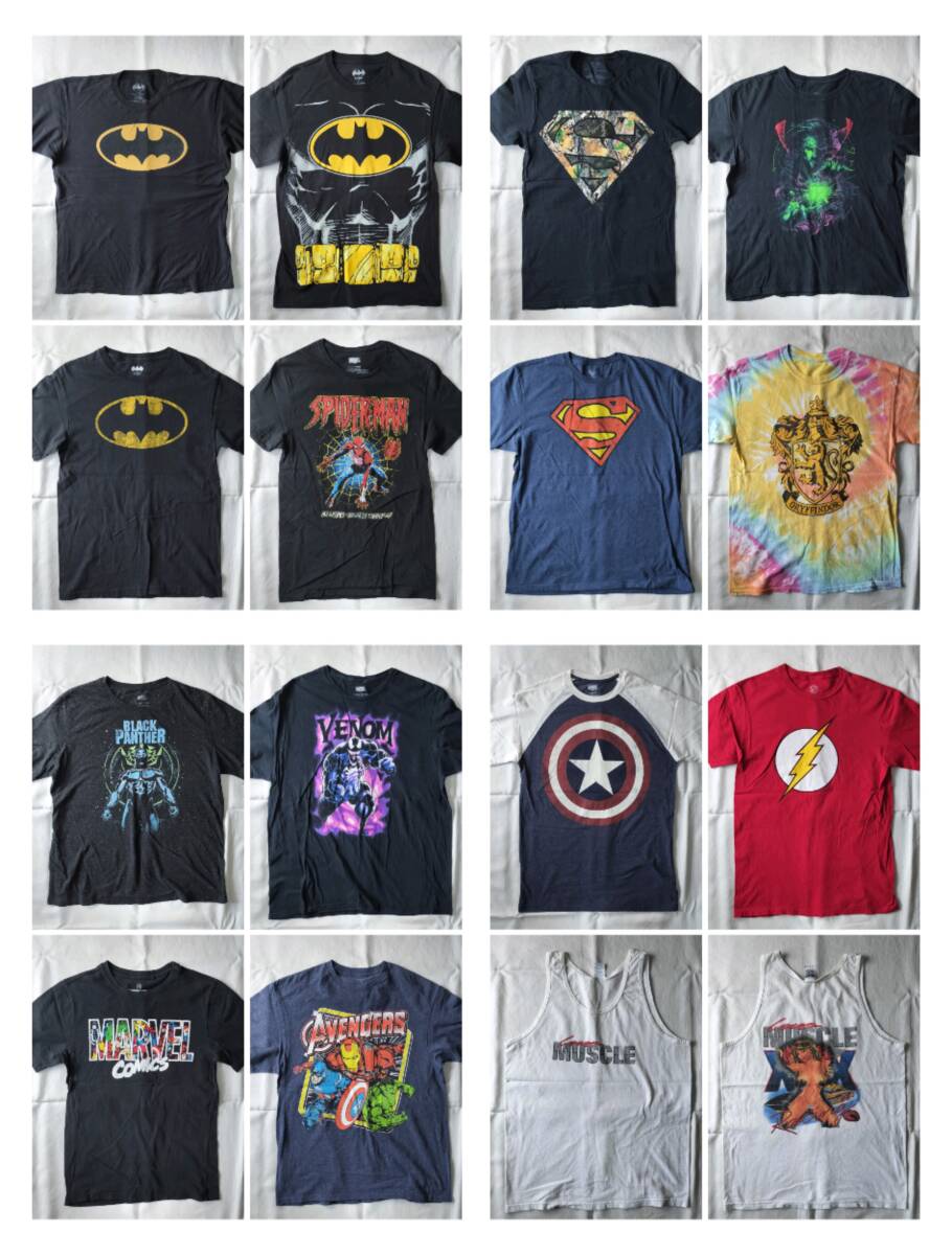 大変お買い得なアメコミTシャツ、タンクトップの15枚セットまとめ売りです。
