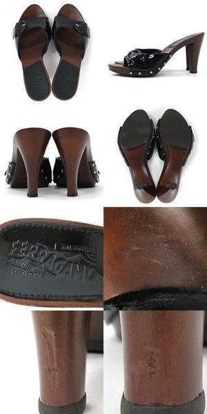 フェラガモ(SalvatoreFerragamo)黒エナメル×ウッドミュール6C | ||||